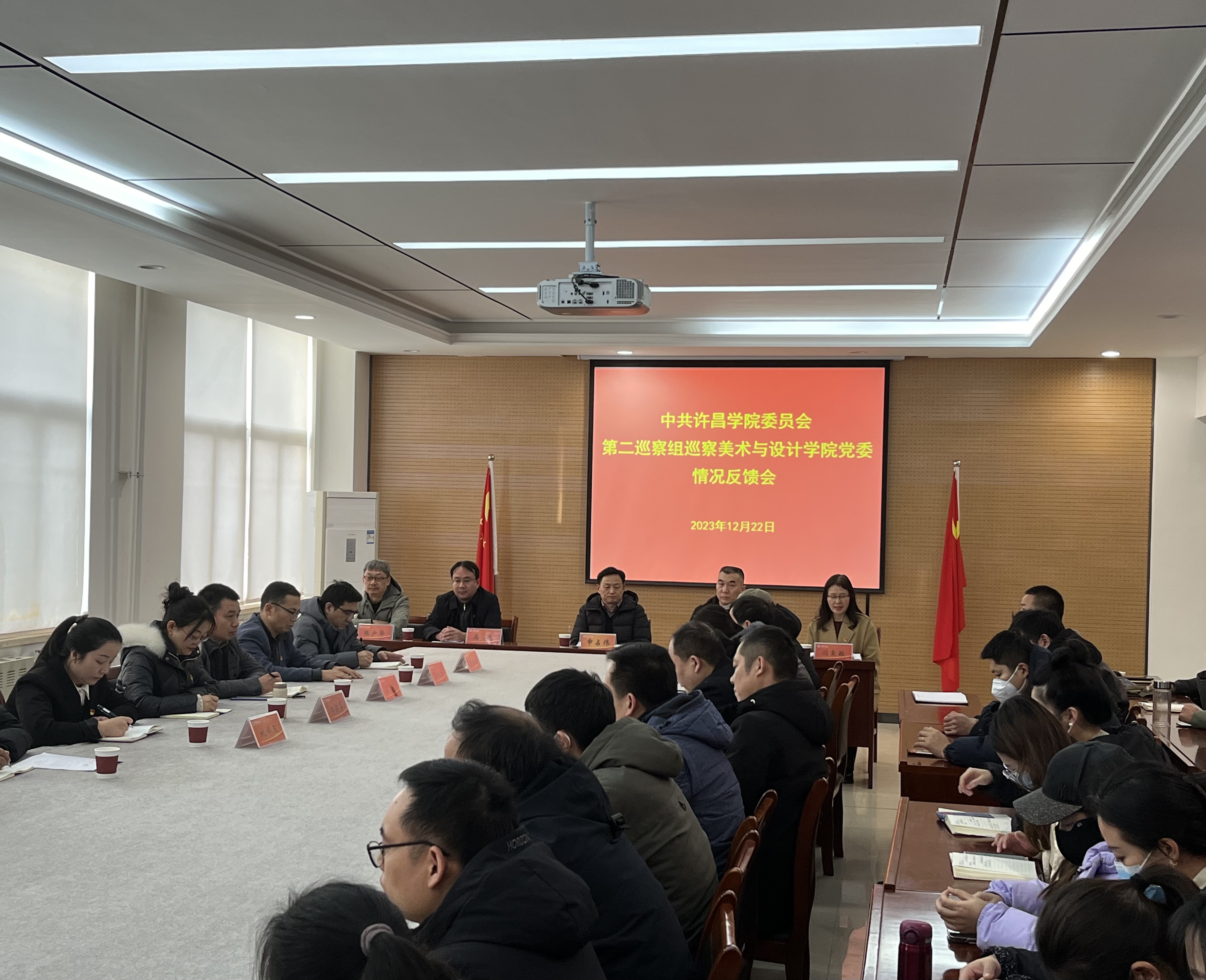 根据学校党委巡察工作安排,12月22日下午,校党委第二巡察组巡察美术与设计学院党委情况反馈会召开。校纪委书记、校党委巡察工作领导小组成员申占伟出席反馈会并提出整改要求,党委第二巡察组组长高凯反馈巡察情况并提出整改建议,校党委巡察办公室主任李万仓主持并对巡察整改工作进行安排布置。