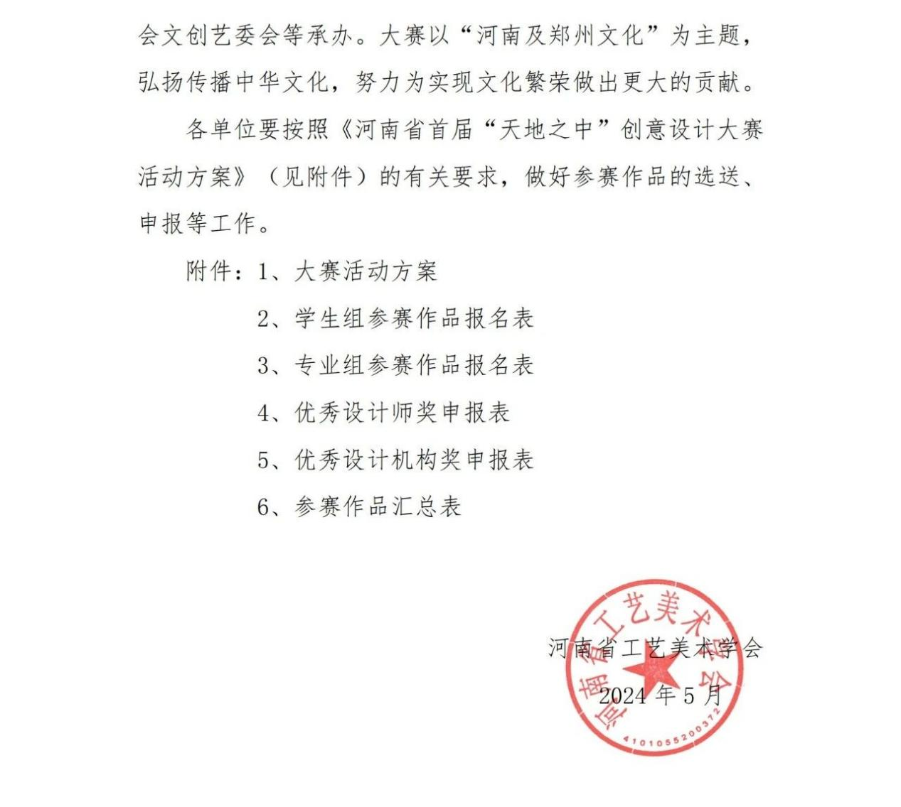 按照《河南省首届“天地之中”创意设计大赛活动方案》(见附件)的有关要求,做好参赛作品和申报等工作。