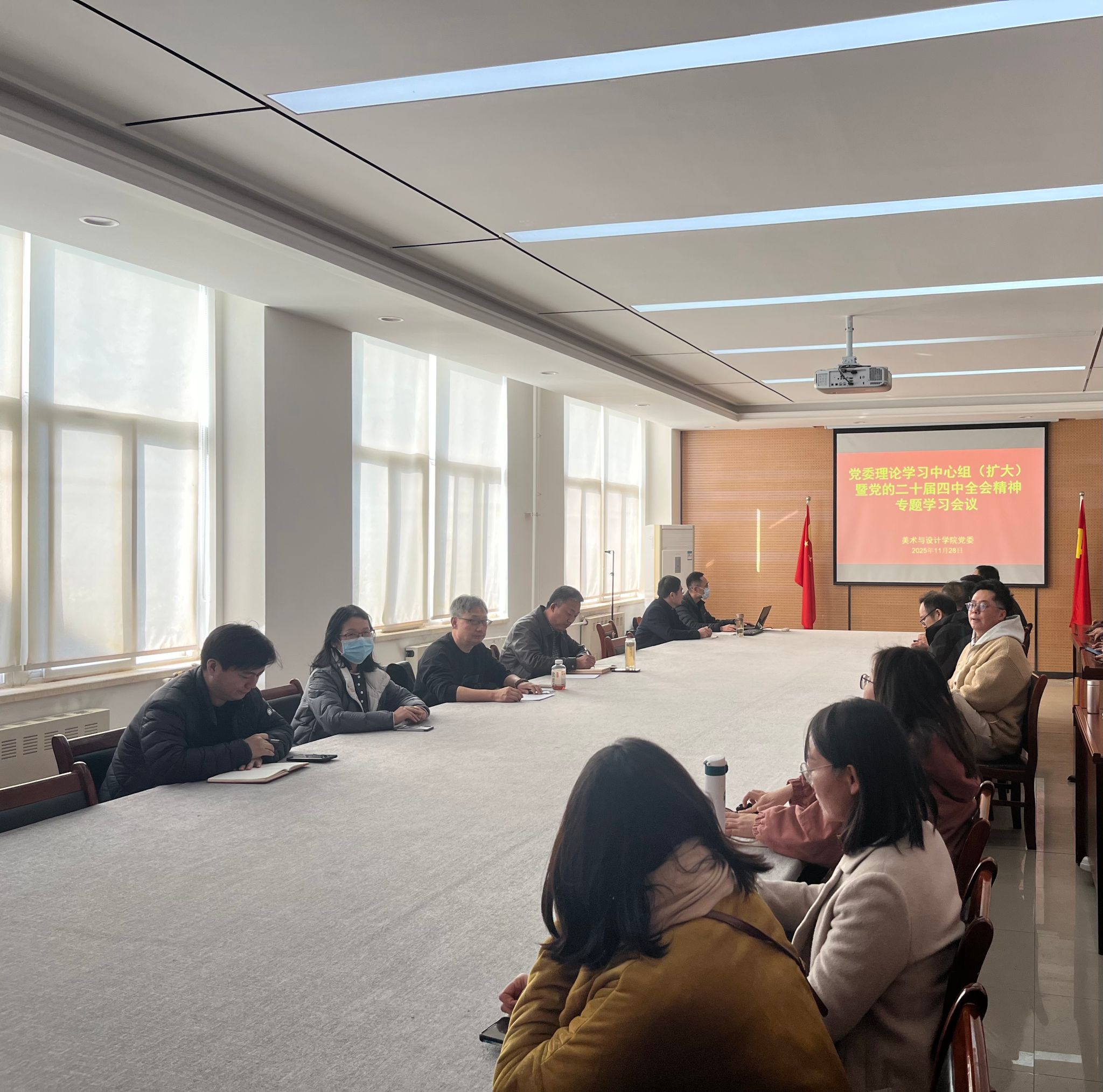 11月28日下午,美术与设计学院在艺术楼三楼会议室召开党委理论学习中心组(扩大)会议,专题学习党的二十届四中全会精神。马克思主义学院院长周耀宏教授受邀作专题辅导报告,学院领导班子成员、全体教师参加会议。