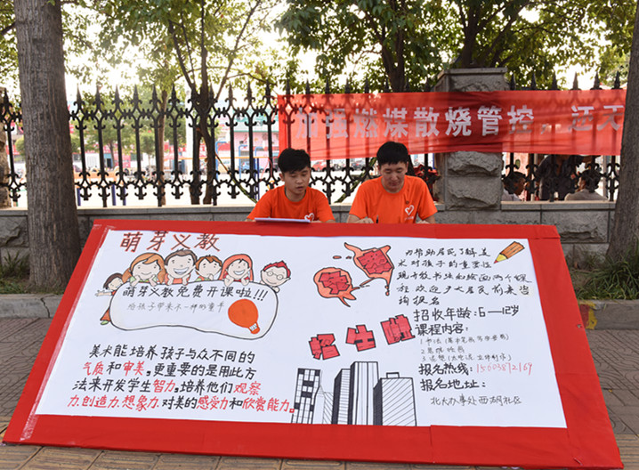 有了第一天的宣传,更多的家长来到了我们招生展板前询问萌芽义教的义务支教情况,并积极地为自己的孩子报名。截止到下午,萌芽义教共招收学生15人,圆满完成了一天的招生任务。无论是报名的学生家长还是社区居民,都对美术传承走进基层社会实践队的义教活动有较高的评价,对队员们也表示十分感谢。