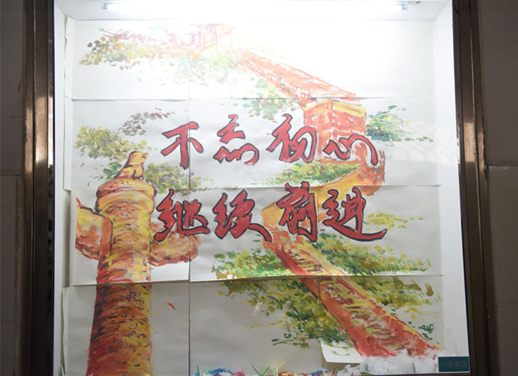 此次橱窗作品展览活动主要分为两个部分:一是学习十九大精神,该系列作品旨在引领大家深入了解十九大精神;二是原创环保绘画作品,同学们一幅幅精彩的画卷,不仅让老师和同学们大饱眼福,也为艺术楼增添了一道靓丽的风景线。在16、17级各班同学的共同努力下我们的橱窗变得更有艺术气息。