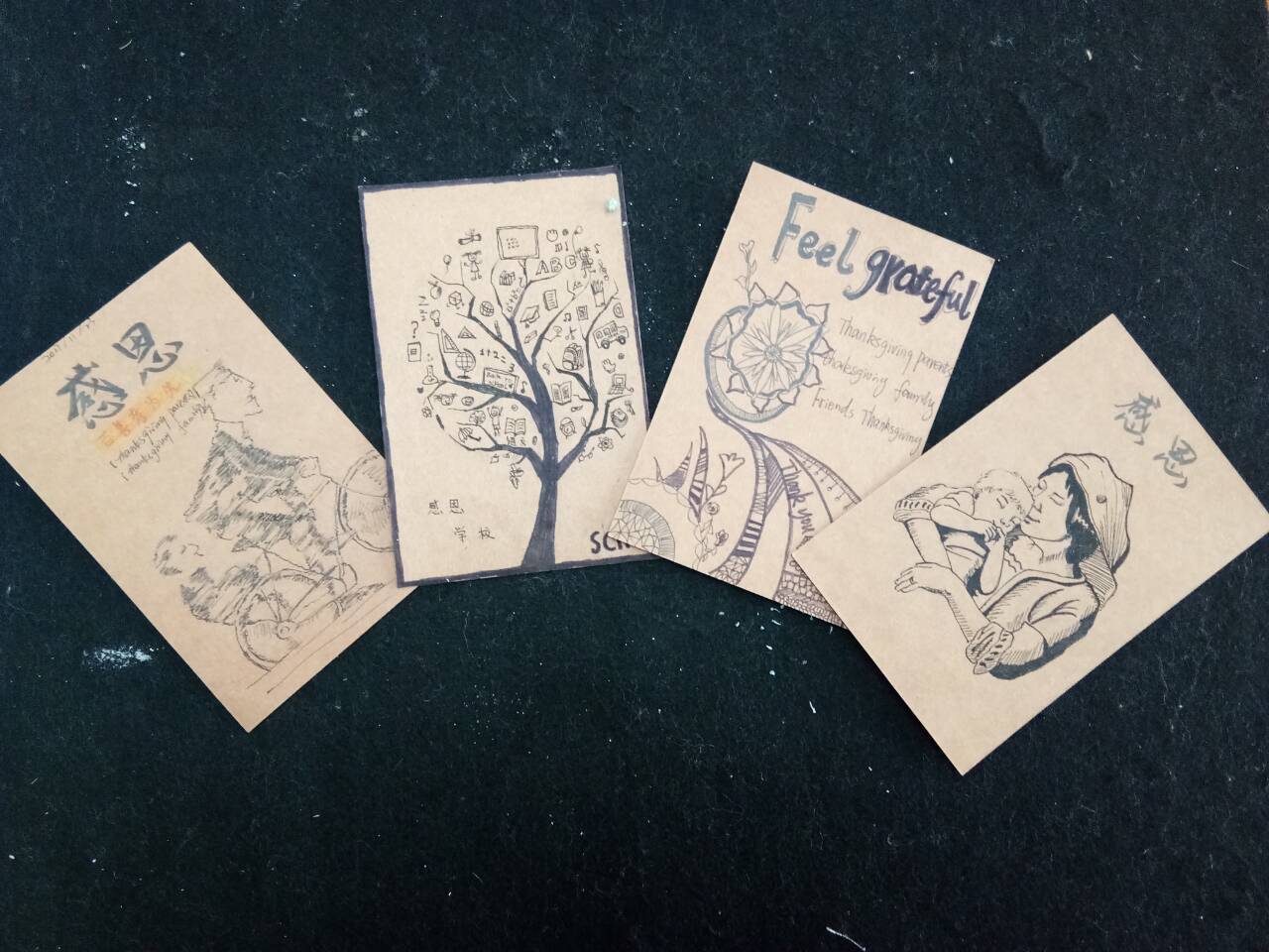 美术学院全体学生均可以参与此次活动,同学们构思并设计制作有创意的感恩明信片;制作方法多种多样,有剪纸、拼贴、手绘、涂鸦等.同学们利用自己的专业优势集思广益,运用多种技法将自己的“感恩”之情体现在一封小小的信笺上。同学们在明信片上写下了很多暖心的话,给这个冬季带来阵阵暖意。此次活动是以比赛的形式进行的,作品最终将送与美术学院生活部评审。