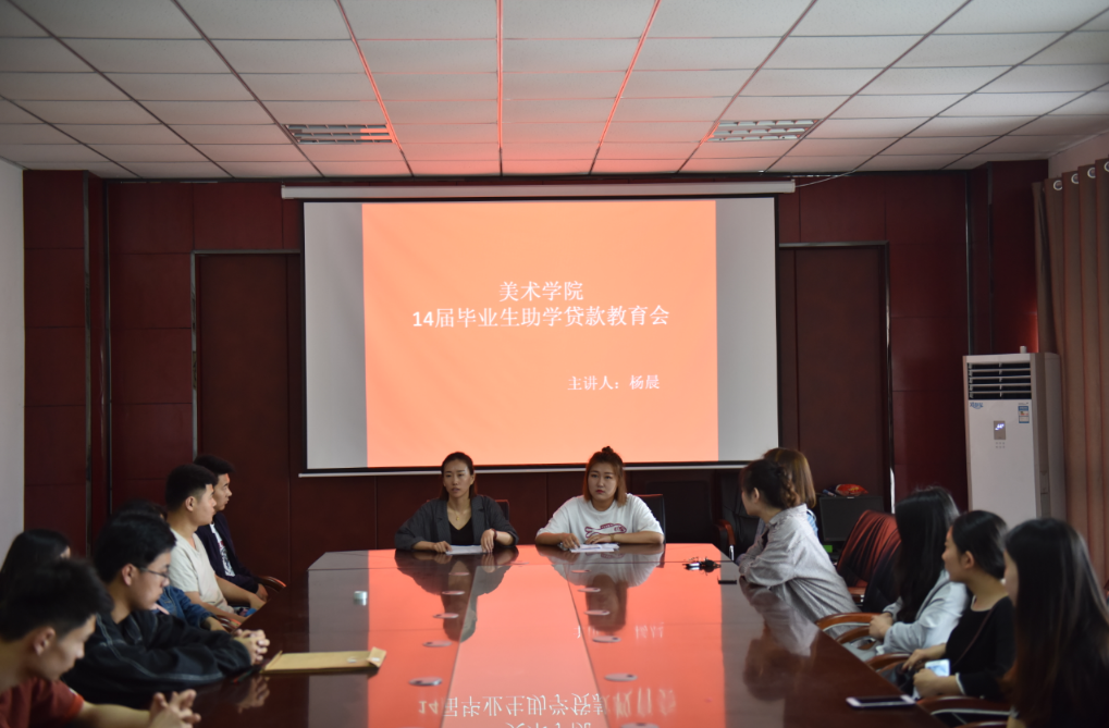 为了进一步落实国家助学贷款政策,促进助学贷款政策的宣传普及,并推动我院国家助学贷款工作良性发展,加强贷款的风险控制,增强贷款学生的诚信意识和感恩意识,5月11日,美术学院2018届毕业生国家助学贷款还款诚信教育大会在艺术楼会议室举行,大会由我院资助专干杨晨老师主持,14级17名助学贷款毕业生参加了此次大会。