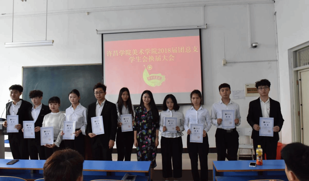 接下来,杨璐老师为上一届的干部们逐一颁发聘书证明,并对他们表示感谢。新一届团学会主席贾承轩发表讲话,他表示会始终坚持“服务师生”的宗旨,将"自我教育,自我管理,自我服务”作为团学会的立足点,在日后的工作投入火一样的热情,以全力以赴的认真态度对待每一份工作,同时他也表示将会带领美术学院团学会在各项活动中争创辉煌!换届大会中,全体团学会干部以热烈掌声表达最饱满的热情,以最热烈的掌声表达将以最积极的态度投入到今后的工作中去的坚定决心!
