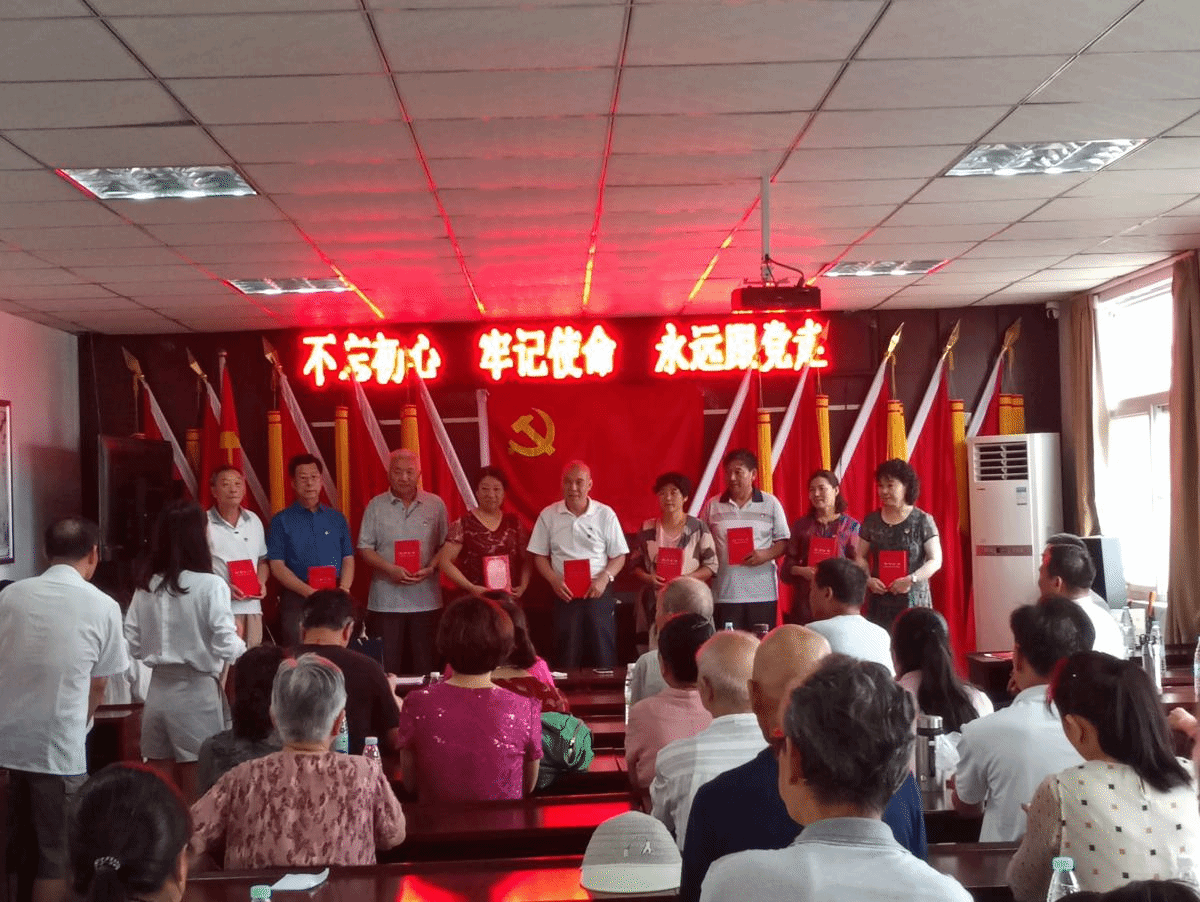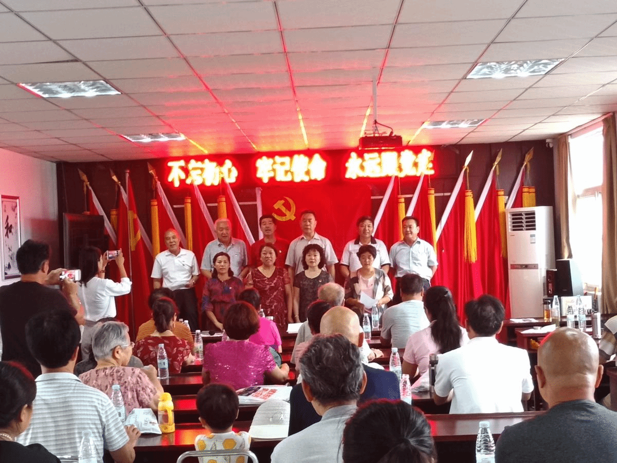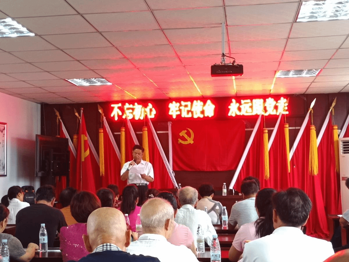 在表彰大会开始之前,队员们在社区复杂人的安排下。首先对会场进行了布置,擦桌子、拖地、扯横幅,有序的忙碌着。等到会议开始,我们就化身工作人员。社区的老党员们,通过演讲、唱党歌、重温入党誓词等方式,表达对建党97周年的祝福。