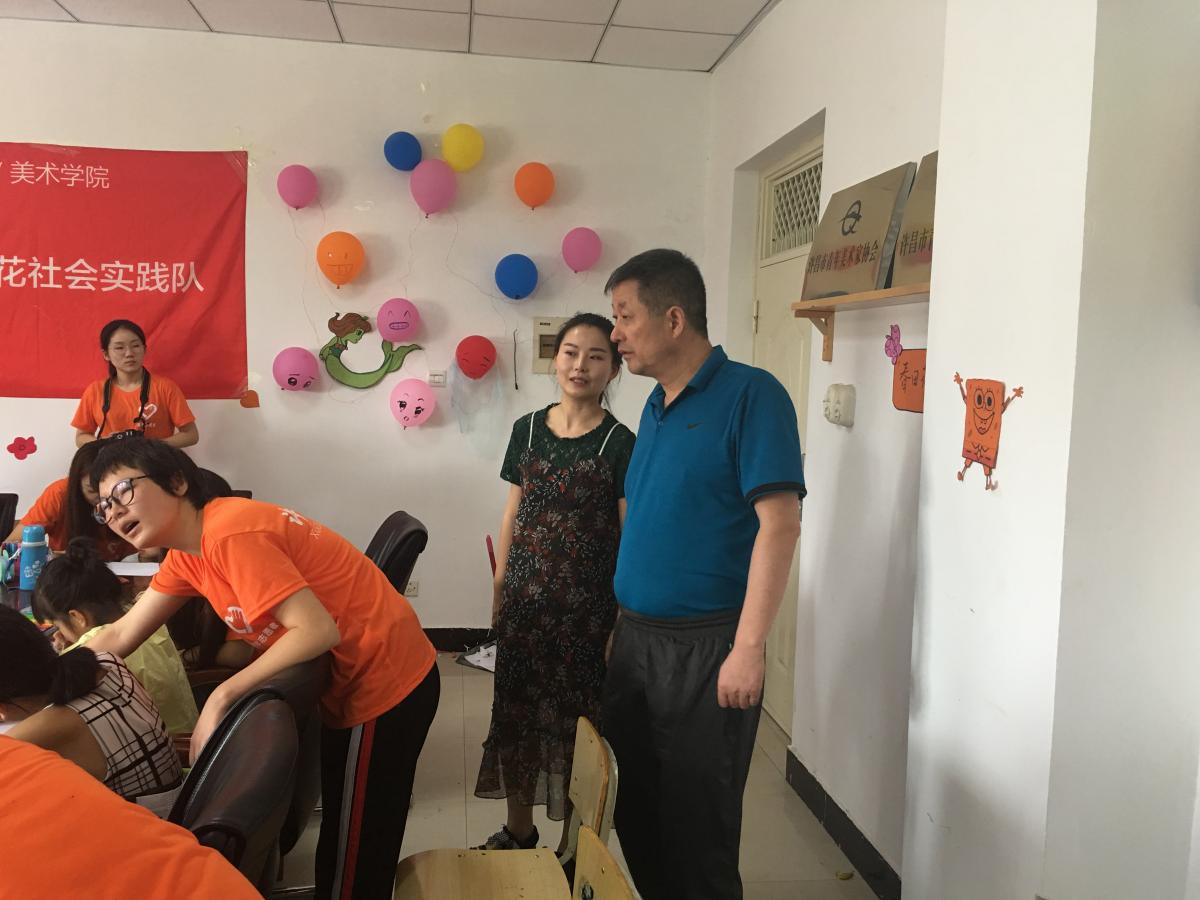 为切实了解我院大学生暑期社会实践工作的实际情况,不断完善和推进我院大学生暑期社会实践活动的开展。7月3日上午,党总支书记马忠顶着炎炎夏日,来到了春田花花暑期实践队所授课教室,看望慰问了我院参加社会实践的“许昌学院美术学院春田花花实践队”。