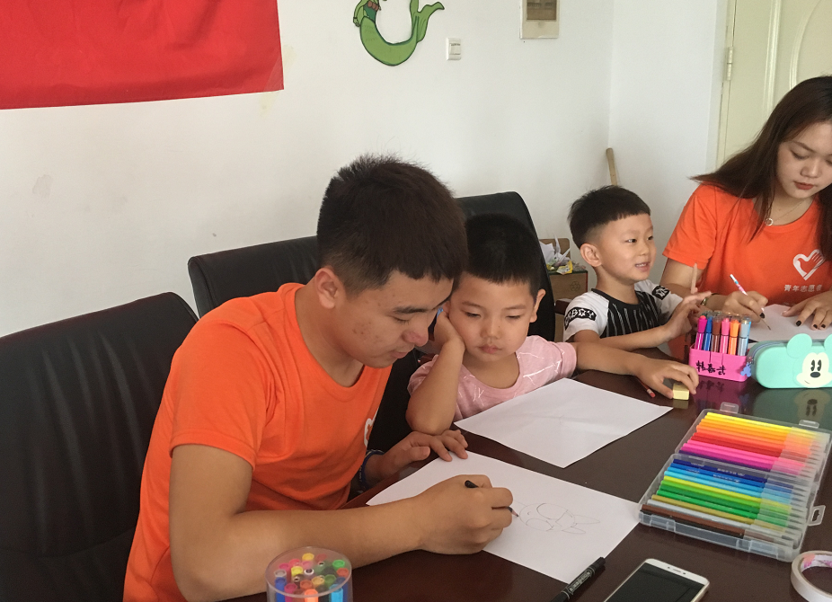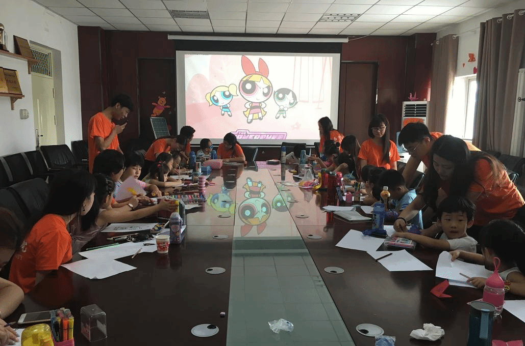 7月5日上午9点,春田花花社会实践团队开始了新的一天,今天展示了我们的特色儿童画教学,以孩子的思维去画画,随心创作,不论用什么颜色都能够表现孩子的精彩画作。