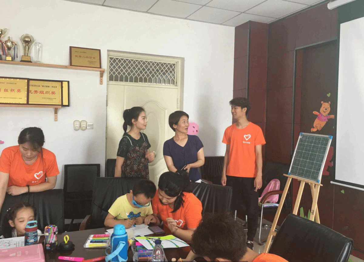 7月7上午九点,小朋友们准时到达了教室,每个同学的脸上都洋溢着灿烂地笑容,主动找到自己的负责老师,跟爸爸妈妈道别,便开始了一上午的课程。有的小朋友还是第一天来,有些许羞涩,但志愿者们热心的引导使他们慢慢地融入了这个大家庭。