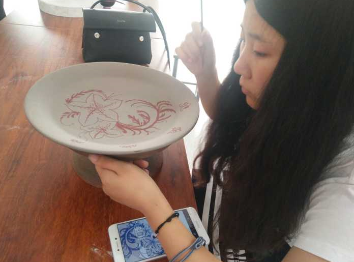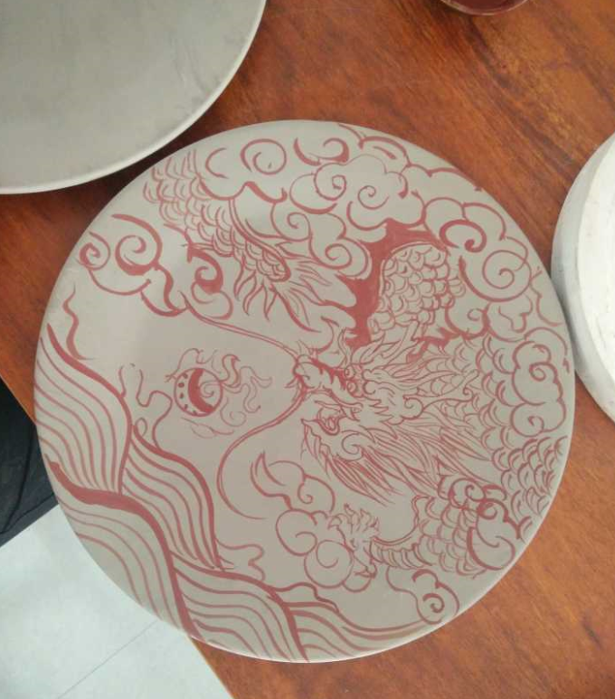 首先实践队学生们到瓷窑内领取已经捏好模型并晾晒半干的瓷盘,用毛笔蘸取特殊颜料便可以在瓷盘上作画,由于已经不是第一次接触瓷盘画了,实践队学生们上手很快,所选取的瓷盘画图案也越来越难。席军晓会长在一旁看着,不时露出赞许的目光。而学生们也渐入佳境,半天的功夫,实践队学生们已经画出了许多较难的瓷盘画,席军晓会长对此赞叹有佳,他表扬到,实践队学生们进步很快,可以看出学生们下了功夫。而实践队学生们也没有骄傲满足,并没有停止手中的画笔,活动中整个研究所十分安静,学生们都聚精会神的握笔作画,实践氛围良好,在实践结束后,学生们收拾好笔墨,打扫完卫生后才离开。