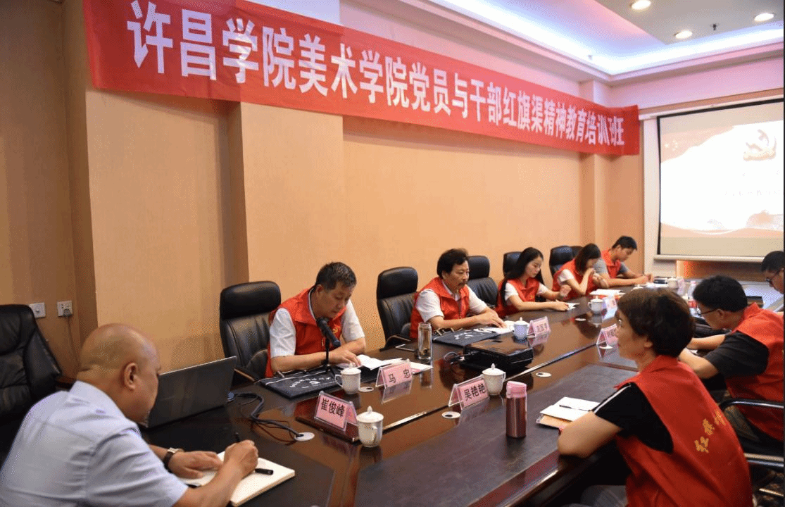 本期培训以理想信念教育、革命传统教育、学习研讨交流为主要内容。8月27日下午,开班仪式隆重举行。仪式在嘹亮的国歌声中开始,培训主任对美术学院的学员们表示欢迎并发表了致辞。马忠书记在会议上对大家提出了几点要求,一要统一思想,端正态度,深刻认识教育培训的重要意义。这次培训的是我院的科级以上干部和党员,应该说我们大家都是院系的骨干,是中流砥柱,我们这支队伍是院系的风向标。只有我们自身能力、政治素质和工作作风的全面提升,才能带好教职工生队伍、才能带动院系工作作风的转变,从而推动院系的发展。二要珍惜机会,联系实际,学深悟透精神实质。希望参训的同志们在学习过程中,无论是理论学习,还是实景教学,都要把理论学习的内容和红旗渠精神与自己的岗位结合起来,要边学习、边思考、边研究,积极探索,努力做到学以致用、学用相长,真正把学习的成果,转化为党性锻炼、作风转变、推动工作的强大动力。三要潜心研修,严肃纪律,树立许昌学院美术学院教师的良好形象。严格遵守培训班的各项制度,服从管理;讲规矩、听安排,营造团结一致、朝气蓬勃的集体学习氛围。