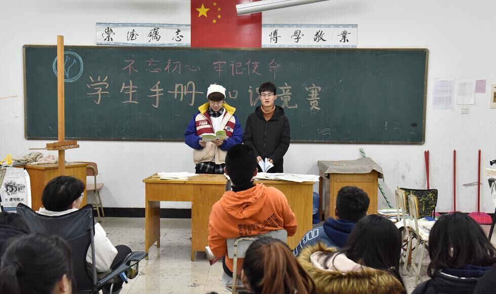 为提高大学生的综合素质,美术学院于12月18日晚在艺术楼各班开展了学生手册知识竞赛。此次活动由17级全体同学参加。
