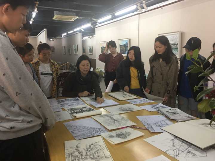 经过漫漫路途,同学们迎来考察写生活动的第一站——无锡全国大学生写生旅游节。在开幕式上,同学们更直观的了解了关于这座城市的特色艺术与文化,观摩和学习各位名家的优秀绘画作品。随后几天,带队老师组织学生分别参观了惠山古镇和荡口古镇,并深入体验古镇生活,开展随后的写生活动。同学们发挥自己的艺术情感,绘出古镇的风土人情,绘出古镇的人文精神。考察写生期间,两位老师为同学们做绘画示范,讲解绘画专业知识与技法,并定时点评同学们的作品,指出绘画上的优缺点,帮助同学们更好的学习。