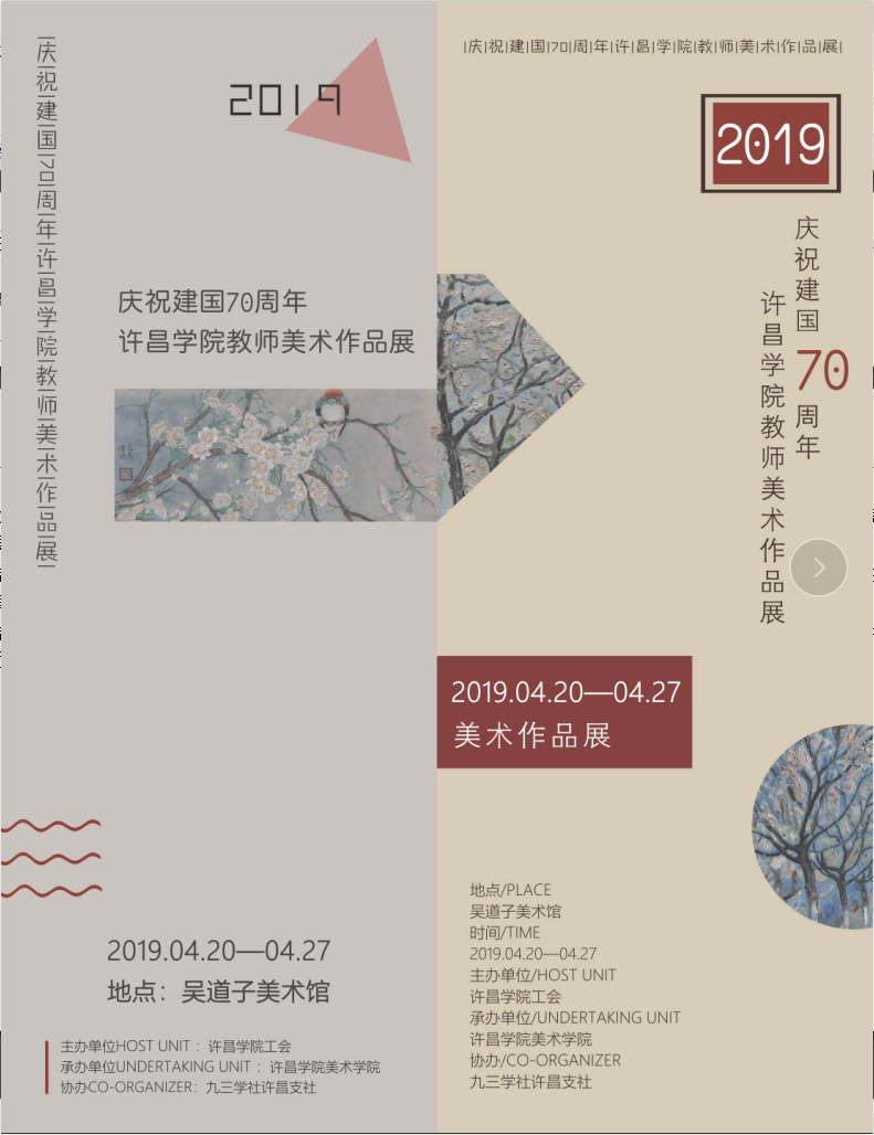 为纪念新中国成立70年来波澜壮阔的光辉历程,不断提升全院师生团结进取、奋发有为的精神面貌,4月20日,美术学院庆祝建国70周年教师作品展在吴道子展厅正式开幕。本次展览共展出作品百余幅,包括中国画,油画和综合绘画等,作品主题鲜明、内容丰富、形式多样。