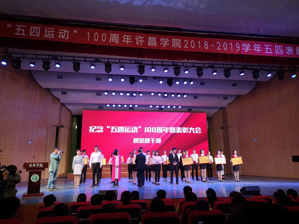 2019年4月30日,许昌学院纪念“五四运动”100周年暨表彰大会在艺术楼音乐厅隆重举行,本次大会对在2018—2019学年在共青团工作中取得突出成绩的先进集体和个人进行了表彰。此次表彰大会中我院学生会荣获优秀二级分会称号;团总支书记杨璐老师荣获模范团干部称号;受到表彰的还有第三期“青马工程”高级班代表崔颖,大批优秀团干部和优秀共青团员。