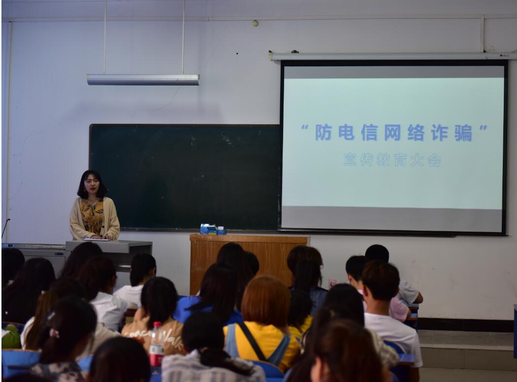 为了进一步提高学生安全防范意识,杜绝校园诈骗情况的发生。5月16日下午,我院在艺术楼216教室组织召开学生防范电信诈骗安全教育主题大会。本次会议由18级辅导员温甜主持。我院全体学生参加了本次会议。