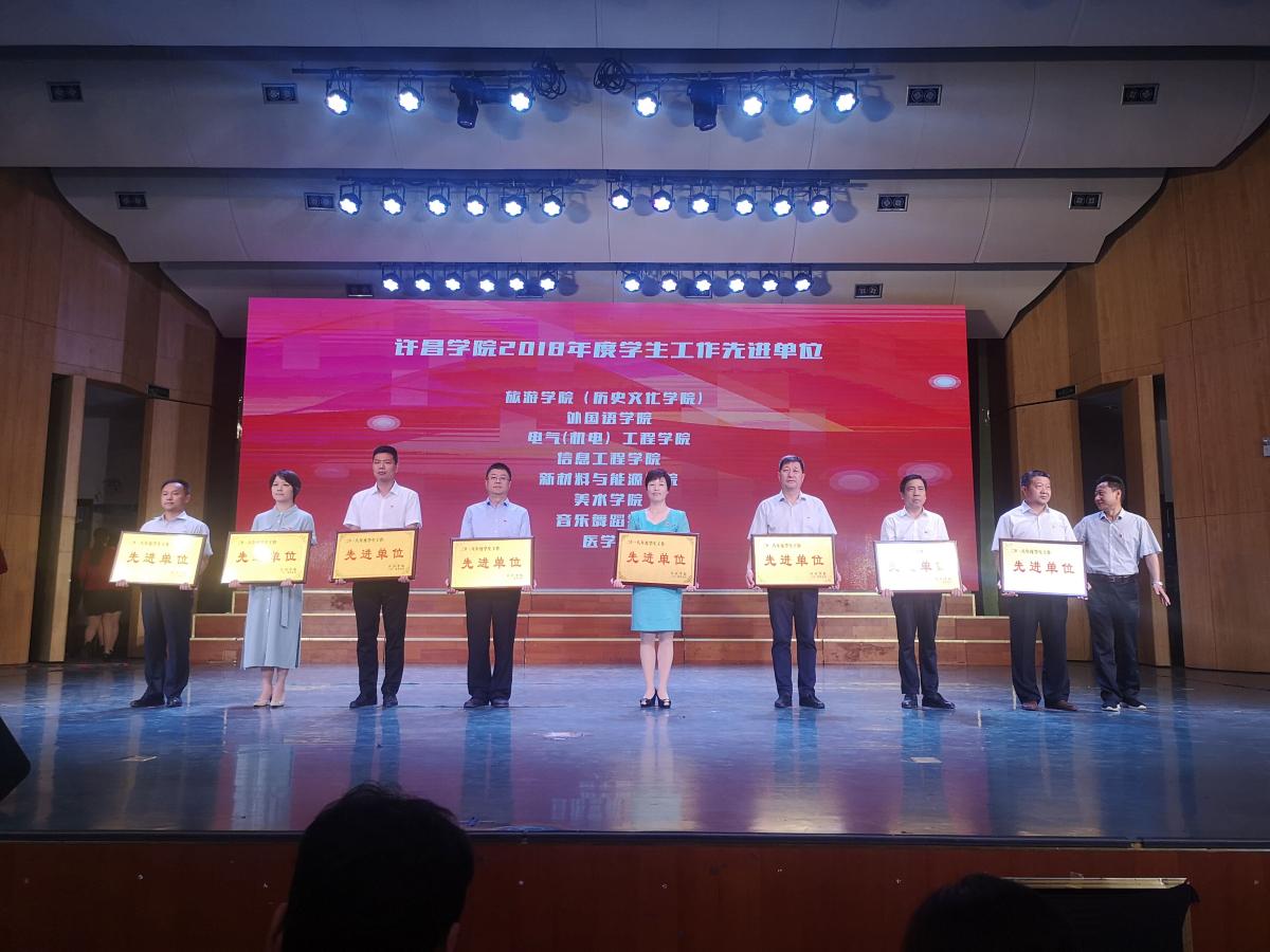 在此次颁奖典礼中我院还获得了许昌学院2018年度学生工作先进单位的佳绩。闪亮的、沉甸甸的奖牌是对我院努力拼搏、奋发有为的鞭策和鼓励,更是为美术学院夯实了前行的力量,激励我院师生向榜样学习,为奋力书写美丽美院的崭新篇章而奋勇拼搏。
