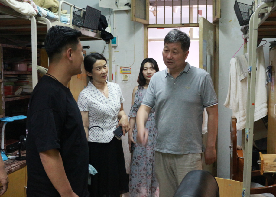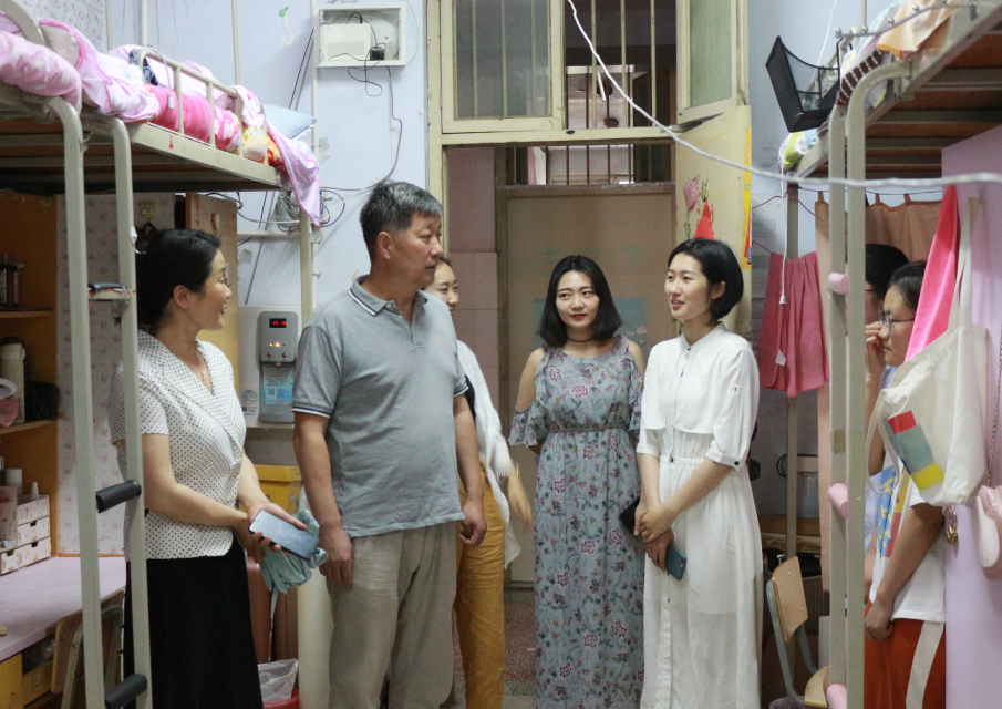 为了做好毕业生思想政治教育,安全防范意识教育的学生工作。倡导毕业生爱校荣校、文明离校,营造健康和谐的校园文化氛围,保证毕业生离校期间学校的安全稳定。2019年6月3日下午,我院党总支书记马忠、副书记吴艳艳和辅导员杨晨、温甜老师先后走进了宁一、宁五学生宿舍看望毕业生,送去慰问和温暖。
