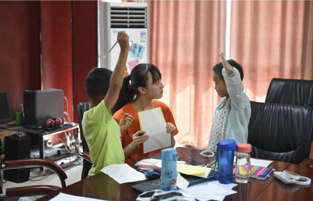 一天的教学任务相对比较繁忙,但看着小孩子们对自己的画和作品的时候开心的表情,志愿者们都觉得身上的疲惫一扫而空,志愿者们愿意用他们的付出换来孩子们的快乐。