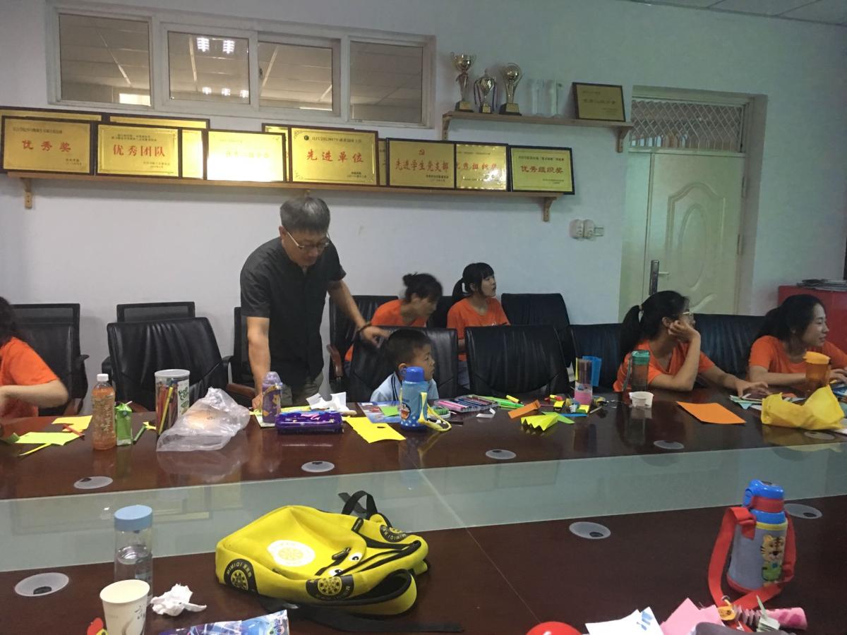 张院长与正在辅导小朋友画画的各位实践队员们进行了亲切的交流,了解到今天上午的课程是趣味折纸,张院长也十分有兴致地拿起小朋友们的作品仔细观赏,并询问了各位小朋友在春田花花上课是否开心,得到孩子们肯定的回答后,张院长也向实践队的同学们表达了赞许。张院长说,大家的作品都十分优秀,各位实践队员在辅导小朋友时非常的细心、耐心,这是值得肯定的。同时,也希望各位同学们能够充分抓住暑期社会实践活动的机会,好好地锻炼自己。