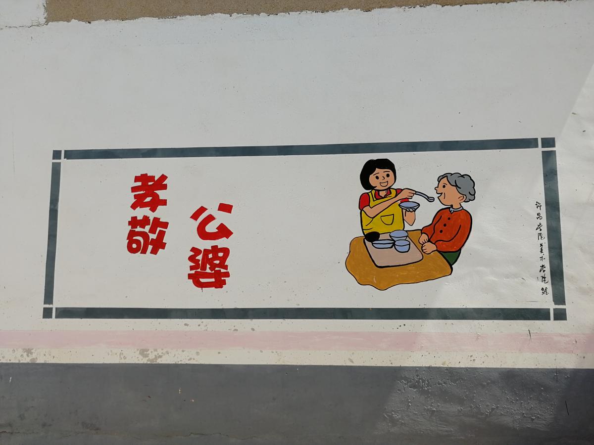 国家的富强保证了人们物质生活的需求,而许昌学院美术学院内乡墙绘实践队师生希望能够通过墙绘的方式丰富人们的精神领域,这同样也是对中华传统美德的一种继承和宣扬。
