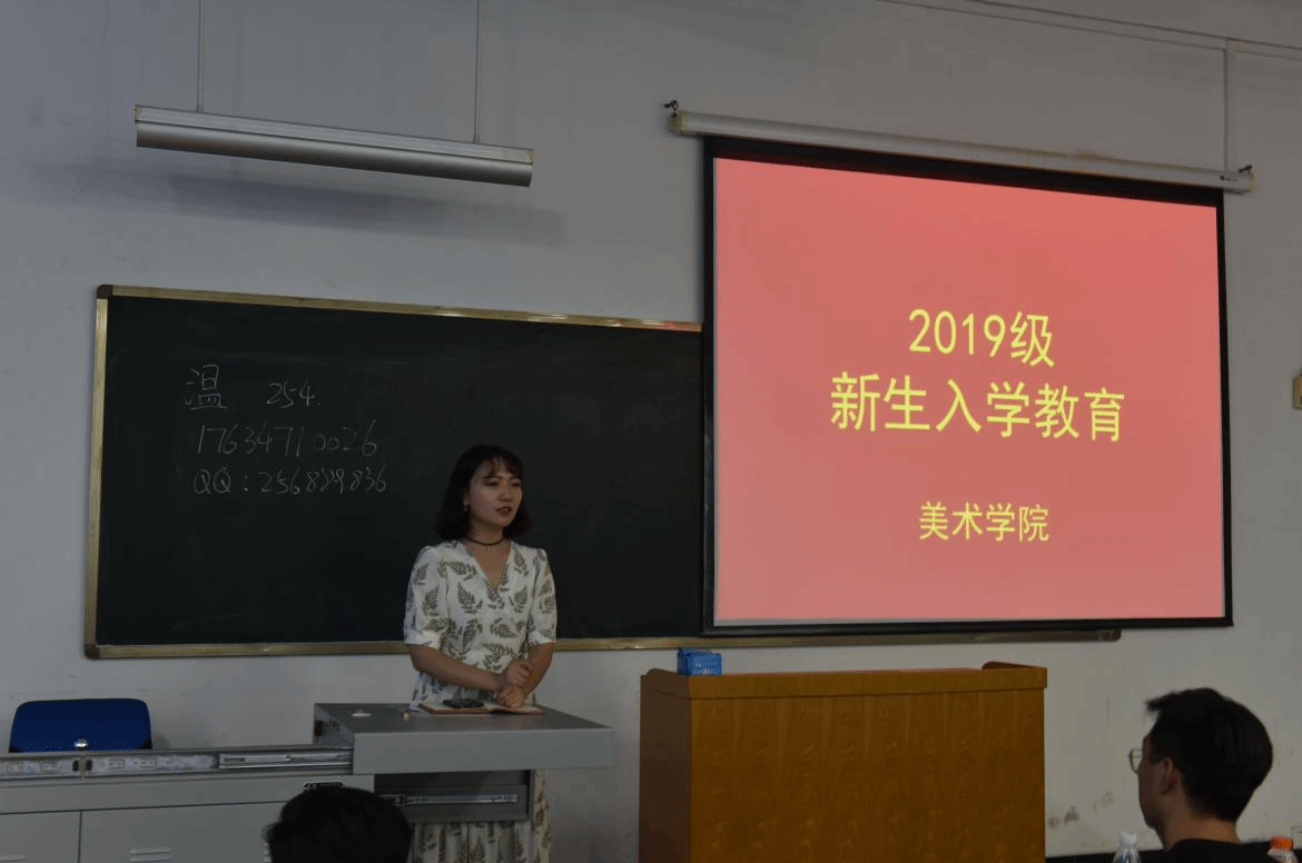 晚上,美术学院召开了2019级新生见面会。新生们跟随着学长学姐来到新班级,熟悉新的环境、新的同学。会上,各位班代首先向同学们讲明了军训期间的作息时间安排,告诫各位同学们要认真对待军训,一旦出现身体不适,一定要及时向负责人请假,不要勉强。此外,班代们还特意强调了安全问题,叮嘱各位同学们在刚开学的这段时间一定要提高警惕,注意寝室的安全以及个人人身财产的安全。
