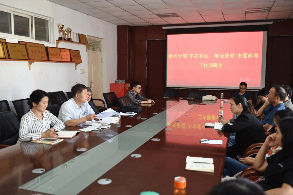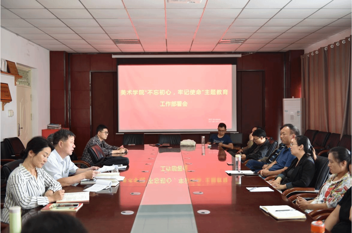 9月23日,美术学院在艺术楼422会议室召开“不忘初心、牢记使命”主题教育工作部署会,美术学院科级以上干部和全体党员参加了会议。会议由党总支副书记吴艳艳主持。
