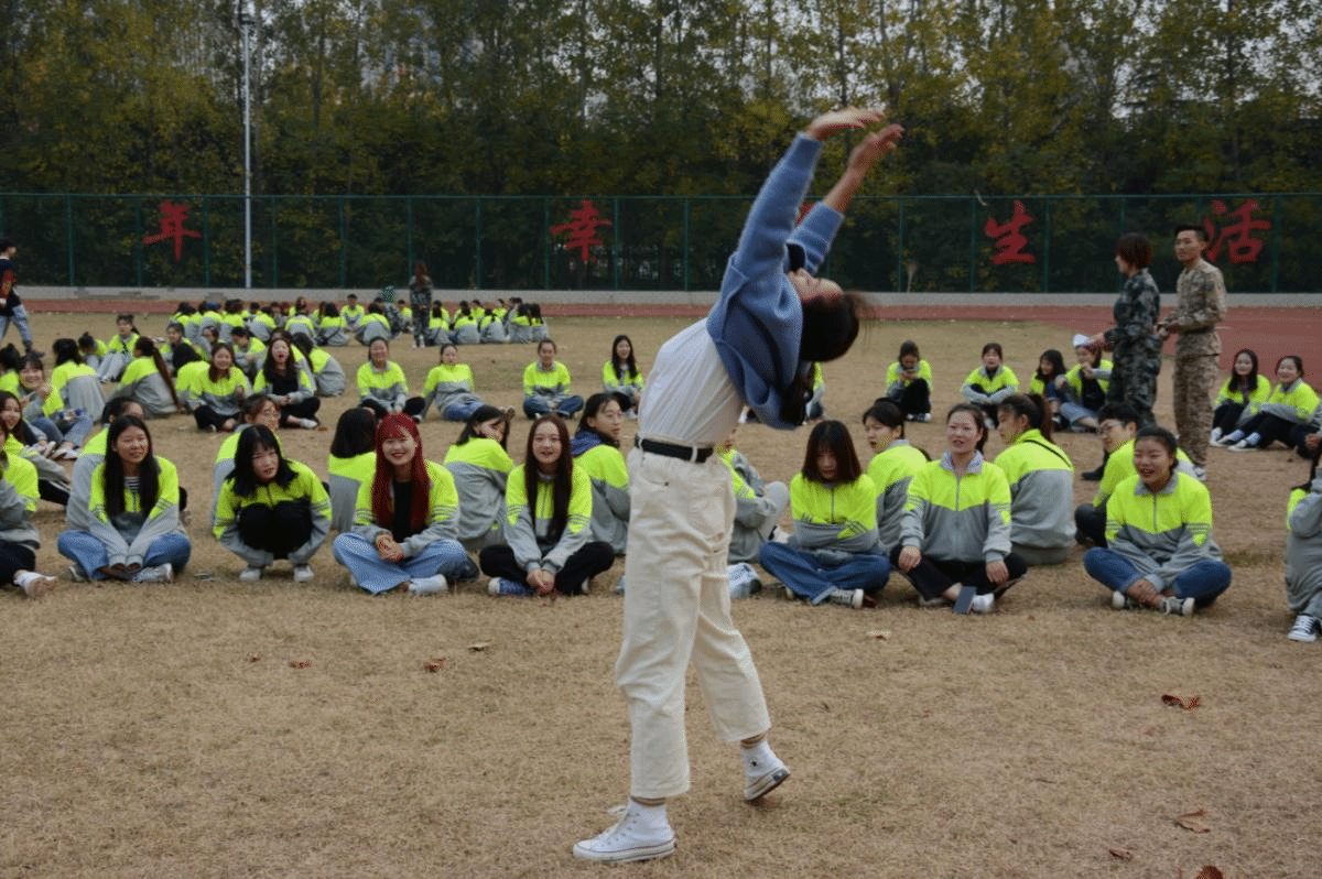 上午,同学们准时来到田径场集合,按照事先分好的小组,由教官和政委带领各自的组员们互相熟悉,并进行了自我介绍和才艺展示,不知不觉中同学们的关系已拉近了一步。紧接着,一个个或令人捧腹大笑或惊险刺激的游戏项目开始进行,内容有“贴烧饼”、“萝卜蹲”、“丢手绢”、“接力穿衣服”、"漫漫人生路"等。各个小组虽有输有赢,但是同学们都兴致盎然,赢的队伍欢呼雀跃,输的队伍也不气馁,暗暗加把劲,为下一场游戏做准备,整个操场上都是同学们的欢声笑语。