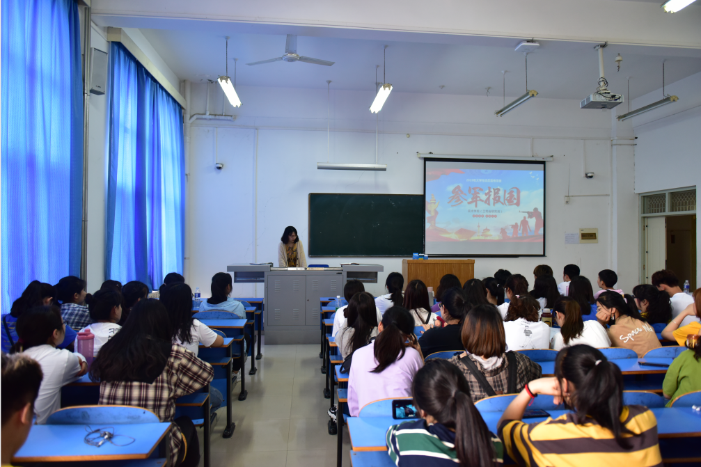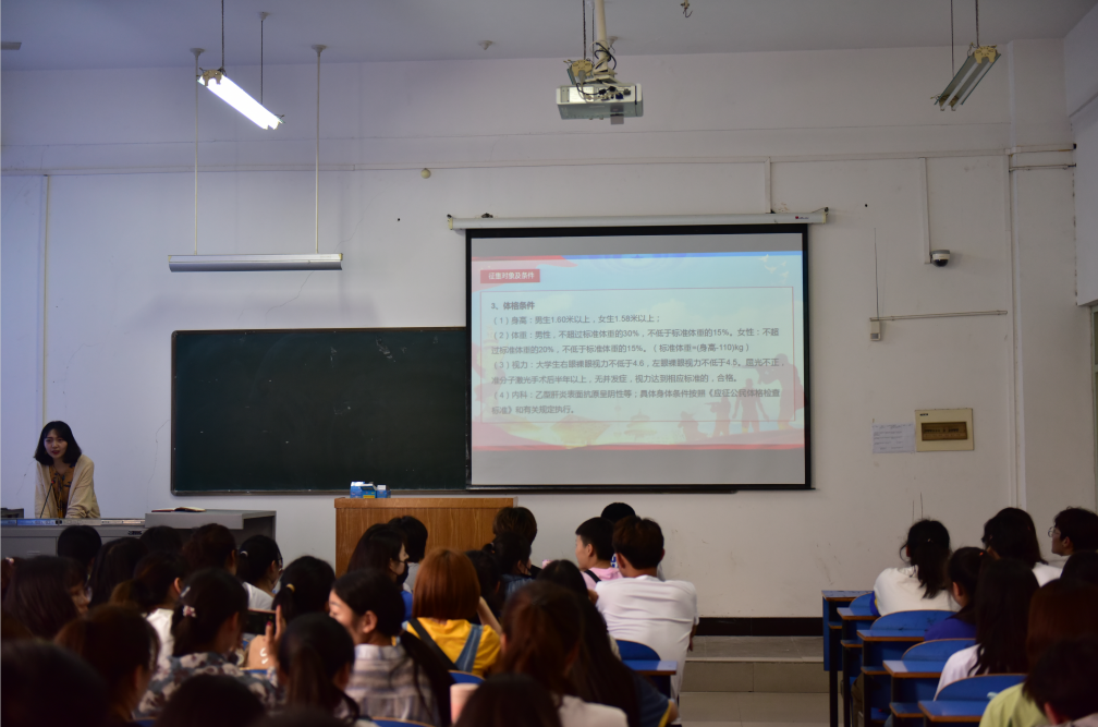 2019年5月10日,我院于艺术楼208教室向18级学生召开征兵入伍宣传会。会议由学生辅导员温甜进行主持,全体18级学生参会。