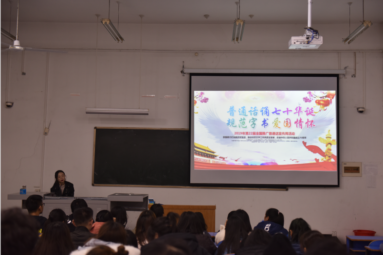 为提高学生的普通话水平,美术学院于11月21日晚上七点在艺术楼112举办了普通话知识讲座。本次讲座由团学会办公室主任马天歌主持,19级全体学生参加。