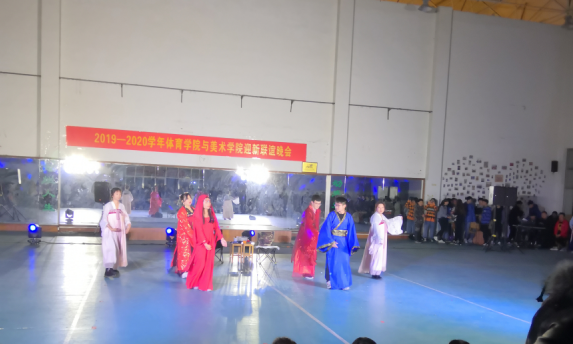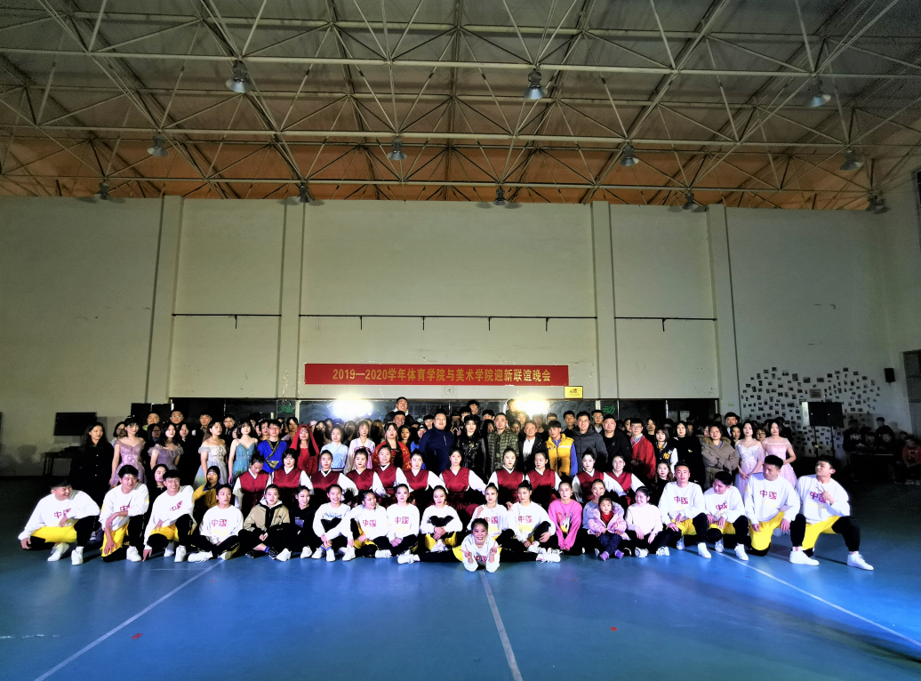 为迎2019级新生,欢度2020元旦。2019年12月28日下午6点,美术学院与体育学院联合举办的2019年迎新暨元旦联欢晚会在健美操馆拉开帷幕。美术学院与体育学院全体师生共同观看晚会。