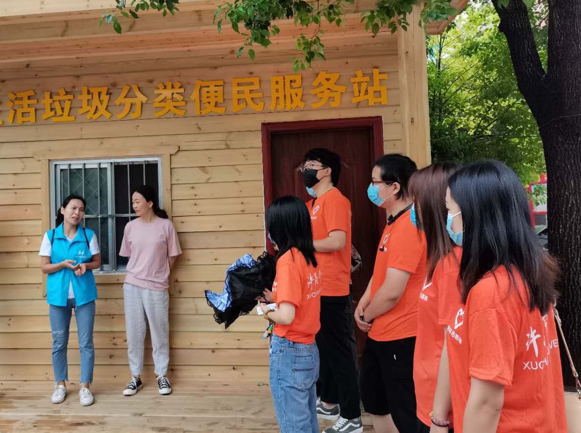 实践队线下的队员们来到东城区八一东路的祥瑞小区,与河南西德曼环保科技有限公司的负责人一起进行社区垃圾分类实地考察。祥瑞小区作为东城区第一个垃圾分类试点小区,垃圾分类基础设施也比较完善,有智能化的垃圾分类投递箱,扫码即可投递垃圾。此外,小区内的生活垃圾分类设施分布图也标注的非常清晰,方便居民能够了解到垃圾站的位置。生活垃圾全程分类,其实就是“一分到底”:从源头投放,到中端收运,再到末端处置,整个过程都要坚持分类。只有让每一位市民深信“一分到底”,才能认同垃圾分类的价值与意义,进而积极主动地参与。