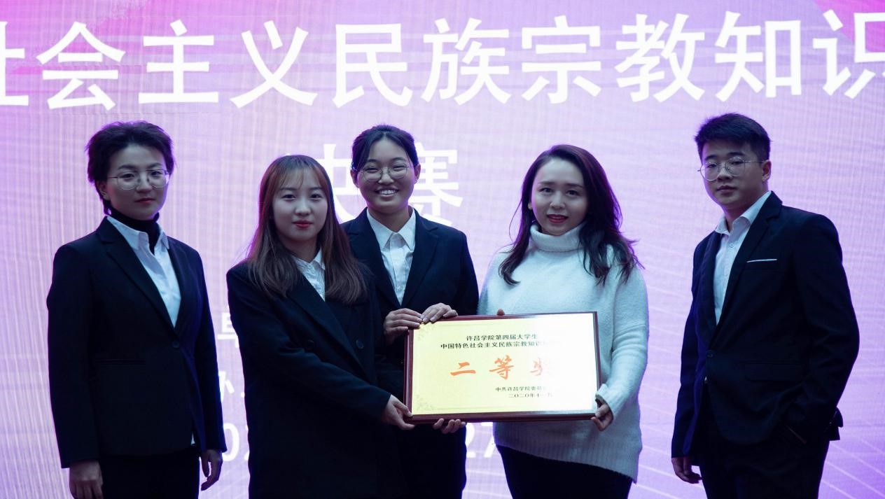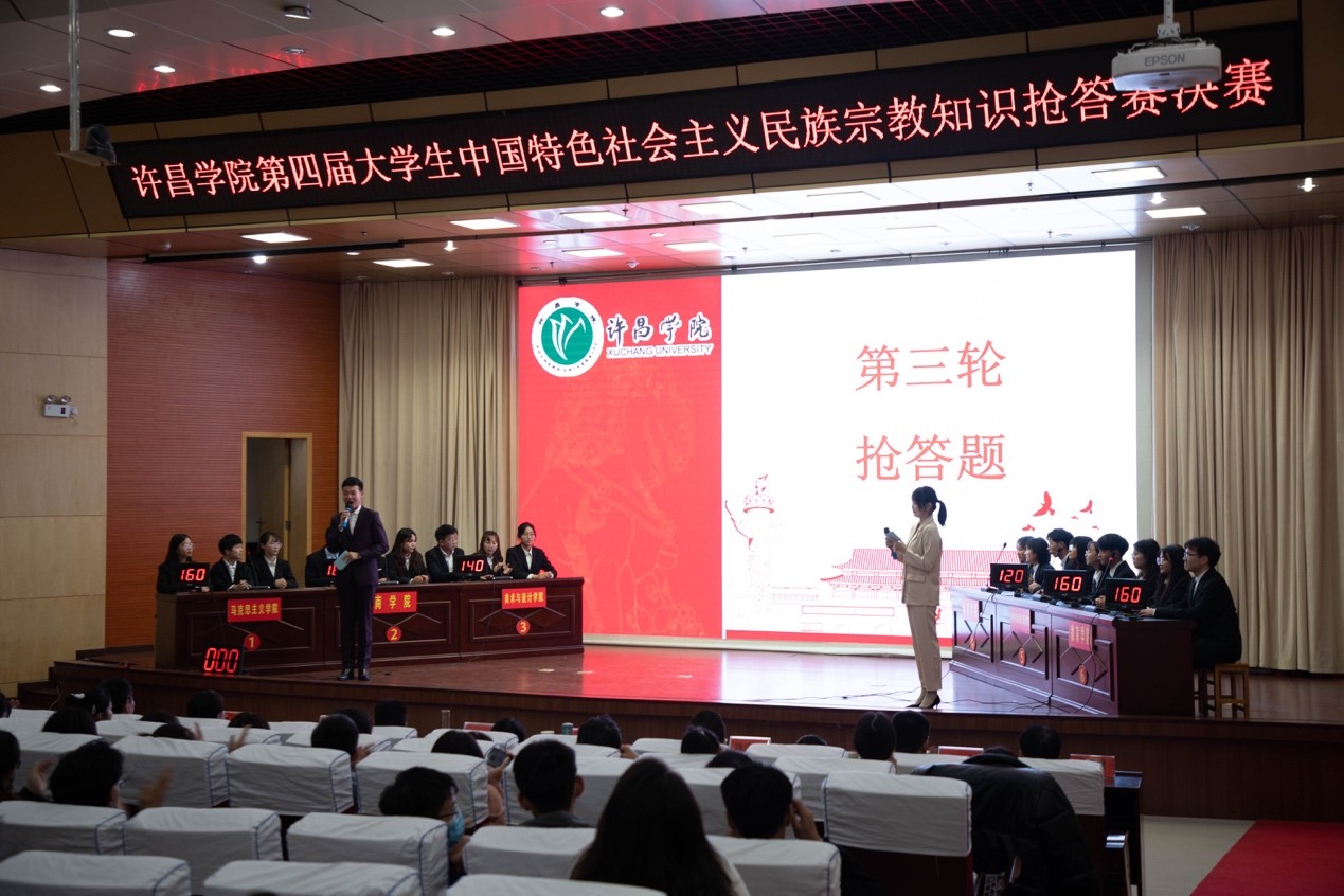11月27日下午,由党委统战部主办、教育学院承办的许昌学院第四届大学生中国特色社会主义民族宗教知识抢答赛决赛在学术报告厅举办。我院学生孙振航、周付一方、王舒霖和李熙媛代表我院参加了此次比赛。