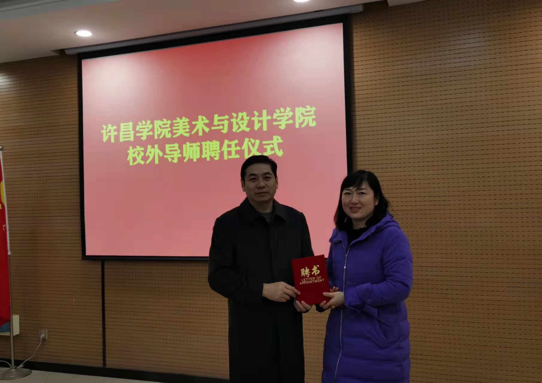 12月9日下午三点,在美术与设计学院三楼会议室召开了隆重的聘任仪式。聘任东城区教研室美术教研员高级教师刘丹、东城区实验学校中小学一级教师高琪为我院校外指导老师。参加聘任仪式的有美术与设计学院党委书记张利、院长王雨及许昌学院钧瓷文化产业中心主任、美术与设计学院副院长张少华等领导和部分师生代表。
