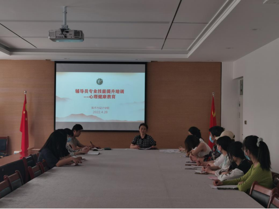 为进一步强化思想淬炼、政治历练、实践锻炼和专业训练,传承党的光荣传统和优良作风,推进教职工能力大提升,作风大转变,根据《许昌学院“能力作风建设年”活动实施方案》和《美术与设计学院开展“大学习大培训大练兵大提升”活动实施方案》要求,2022年4月26日,我院于艺术楼三楼会议室组织开展辅导员专业技能提升——心理健康教育专题培训。院党委副书记吴艳艳主持会议,辅导员兼心理专干胡一铭老师围绕大学生心理健康教育、心理危机干预等内容,进行学习成果的分享和交流。我院全体辅导员、团学会学生干部参与聆听。