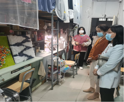 2022年4月29日下午,我院党委书记张利、党委副书记吴艳艳带队走访宁园5号学生宿舍,了解疫情防控期间我院学生的在校情况,面对面与学生们促膝长谈,送去殷切关怀和深切慰问,我院辅导员老师、学生干部陪同走访。
