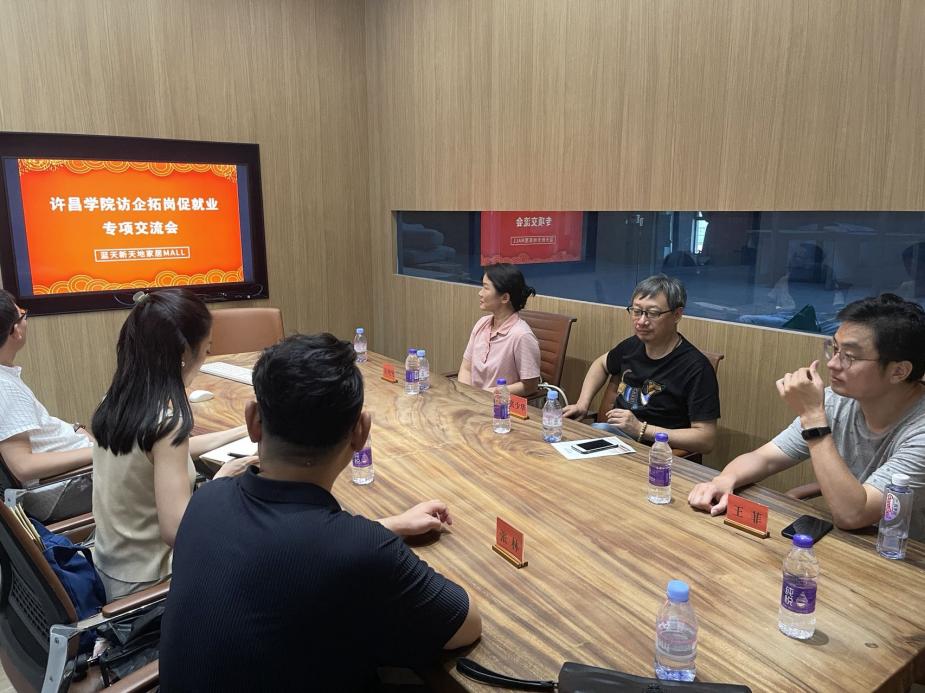 按照《许昌学院开展访企拓岗促就业专项行动实施方案》中“稳就业”“保就业”的工作部署要求,7月25日,钧瓷文化与产业研究中心主任兼美术与设计学院副院长张少华、党委副书记吴艳艳、副院长王菲及专业老师、辅导员等一行5人,先后到北京龙发建筑装饰工程有限公司许昌分公司、许昌市建安区新天地商贸中心、许昌拉法柒陆设计有限公司、许昌壹一工程管理有限公司、河南林派装饰设计有限公司进行走访调研。