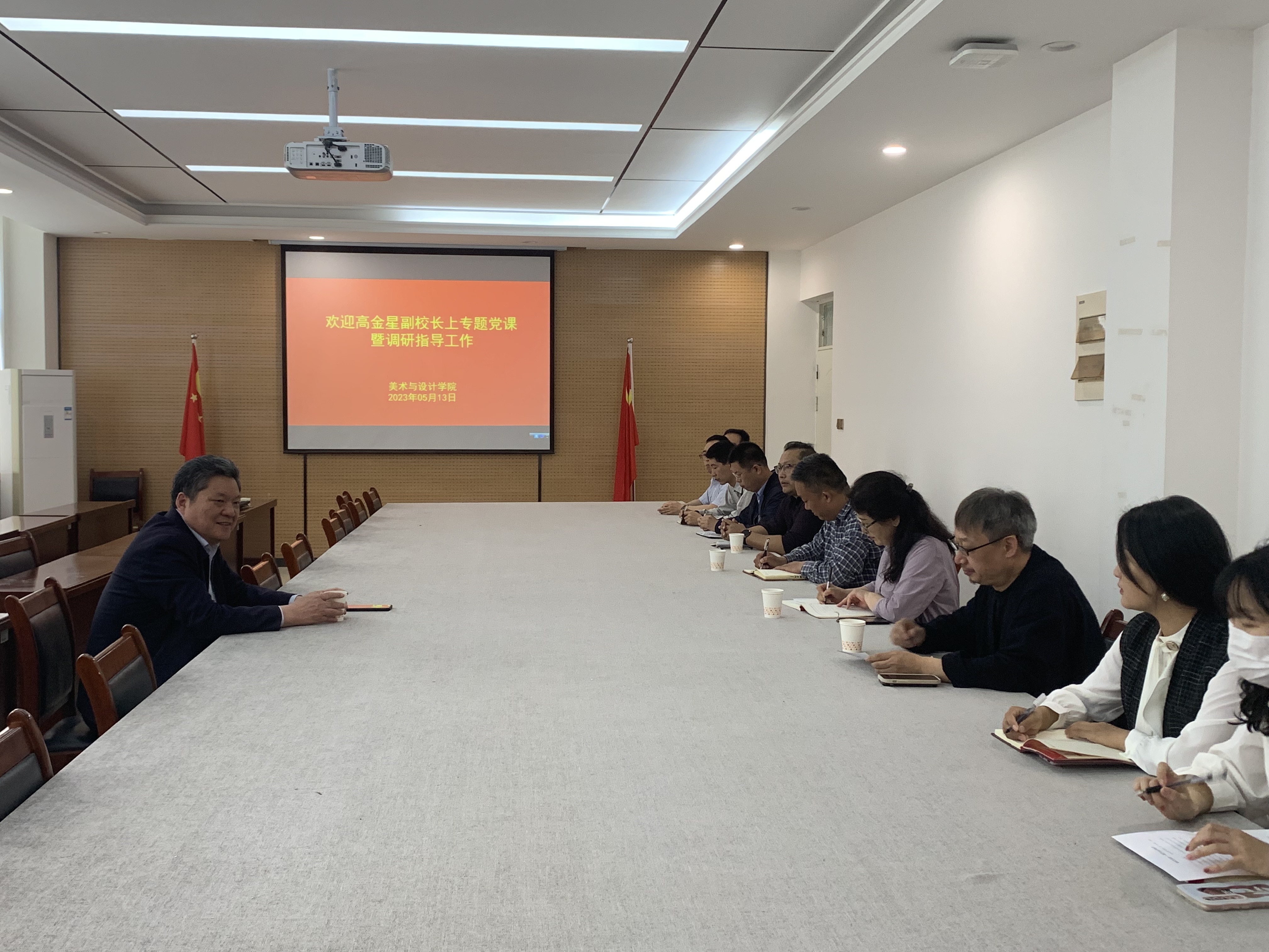根据主题教育理论学习安排,5月13日上午,高金星副校长受邀到我院上专题党课并就主题教育工作进行调研指导,我院全体班子成员、各支部书记、支部委员参会,会议由党委书记闫爱敏主持。