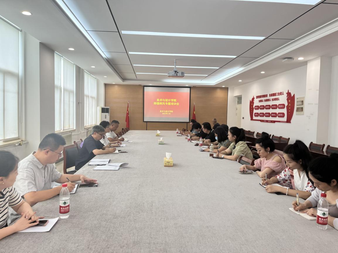 为深入开展主题教育,落实师德师风问题整治工作要求,7月18日,我院在艺术楼三楼会议室召开了师德师风专题培训会,会议由我院党委书记闫爱敏主持,全体科级干部参加了本次培训。