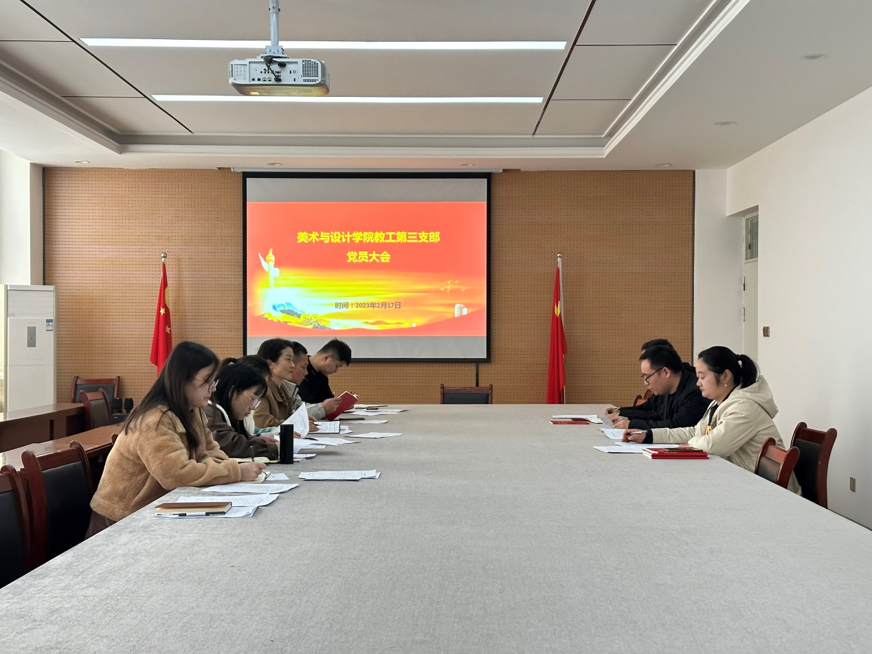 2月17日,美术与设计学院教工第三党支部召开党的二十大报告和党章专题学习会。会上,全体党员集中学习了党的二十大报告和党章,并结合各自工作实际进行交流发言。会议由党支部书记李海鹏主持。