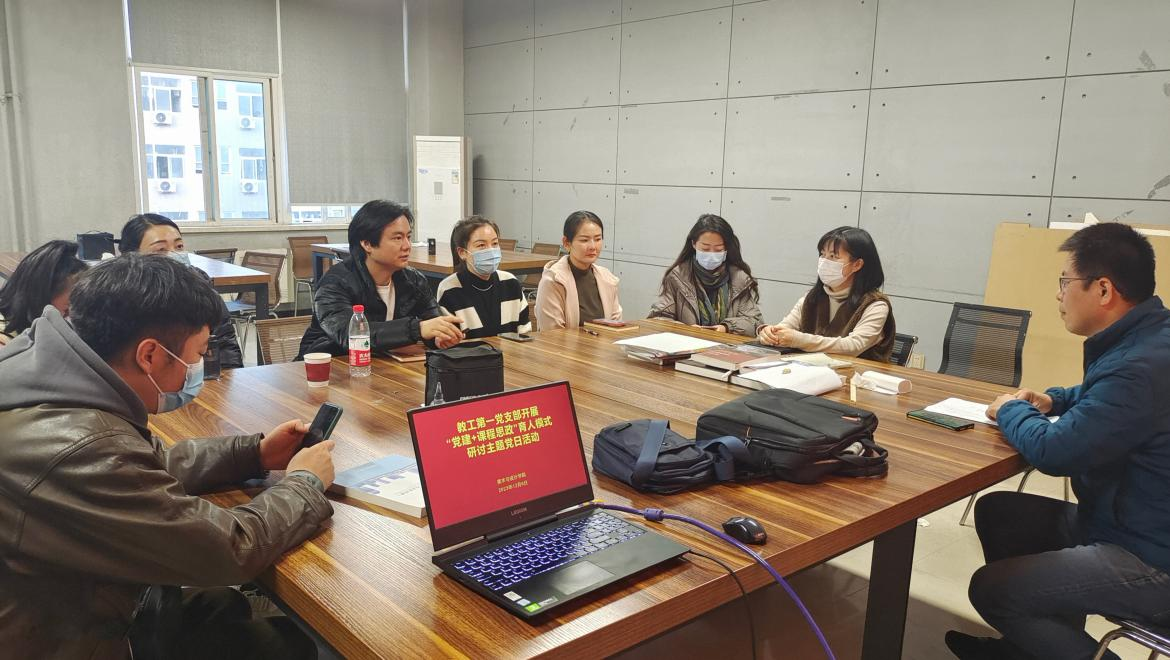 12月8日,教工第一党支部全体党员在艺术楼工作室四开展“党建+课程思政”育人模式专题研讨会,会议由支部书记张晓珂主持。