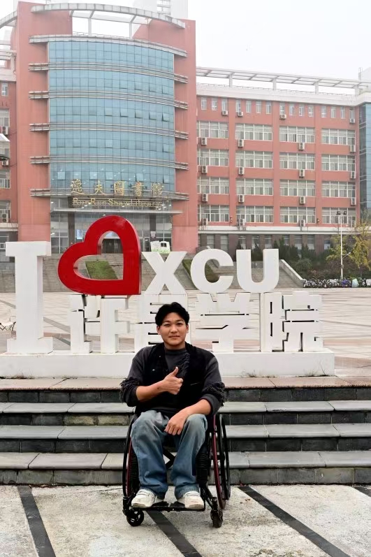 轩辕兵,许昌学院美术与设计学院2024级环境设计专业学生,今年20岁,老家在周口市西华县。1岁半时,他得了脊髓灰质炎,从此无法站立;他是幸运的,遇到了爱他的父母、热情的同学和可敬的老师。