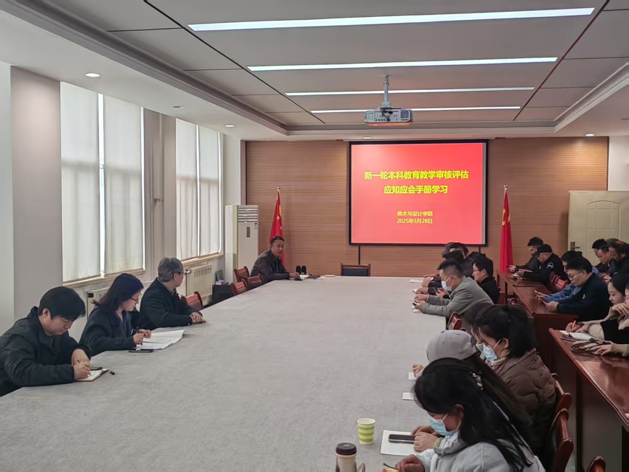 为深入贯彻落实教育部关于本科教育教学审核评估工作的相关要求,进一步统一思想、凝聚共识,扎实做好迎评促建工作。3月28日,我院在艺术楼三楼会议室,召开新一轮本科教育教学审核评估应知应会手册专题学习会。会议由副院长韩鸿友主持。全体教职工参加会议。