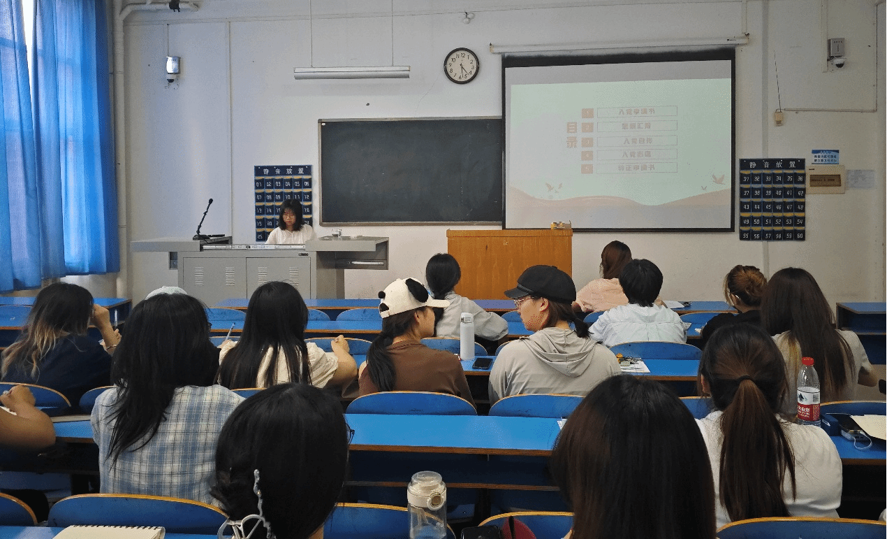 5月30日,我院于艺术楼212教室组织召开《党员发展流程解读》主题团课,主讲人胡晶老师就如何撰写入党申请书等进行详细讲解,带领同学们细致了解了党员发展的全流程。