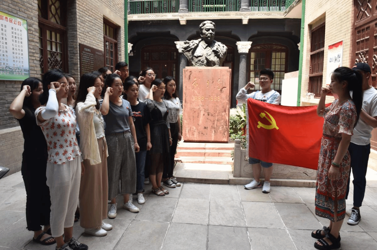 6月8日上午,到达修葺一新的刘青霞故居,这里将刘青霞传奇的人生和开封的辛亥革命自然地融合在一起,不仅使刘青霞的辛亥义举有了坚实可靠的历史背景,而且让开封的辛亥义士有了栖息之地,大大丰富了馆藏内容,党员们更直观地了解刘青霞、认识刘青霞。从刘青霞故居出来,对面就是刘少奇纪念馆。一层进门的大房间内,迎面墙壁上方悬挂着刘少奇的大幅标准像,像下嵌有党徽,让我们更加明白了作为一名党员的责任。参观中,全体党员全程佩戴党徽,认真聆听讲解员的讲解。在认真的了解刘少奇同志的先进事迹后,党员们深切感受到了刘少奇同志代表共产党的那种联系群众,深入细致的作风。接着,全体学生党员和新预备党员在刘少奇石像前进行了庄严宣誓:我志愿加入中国共产党,拥护党的纲领,遵守......在庄重嘹亮的宣誓声中,刘少奇同志仿佛永远活在我们心中。