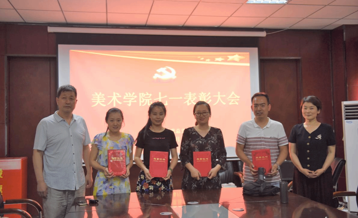 会议在雄壮的国歌声中拉开帷幕。马忠书记宣读了《美术学院关于表彰优秀共产党员的决定》。4名优秀共产党员受到了表彰。马忠书记和吴艳艳书记分别为获奖党员颁发了荣誉证书。