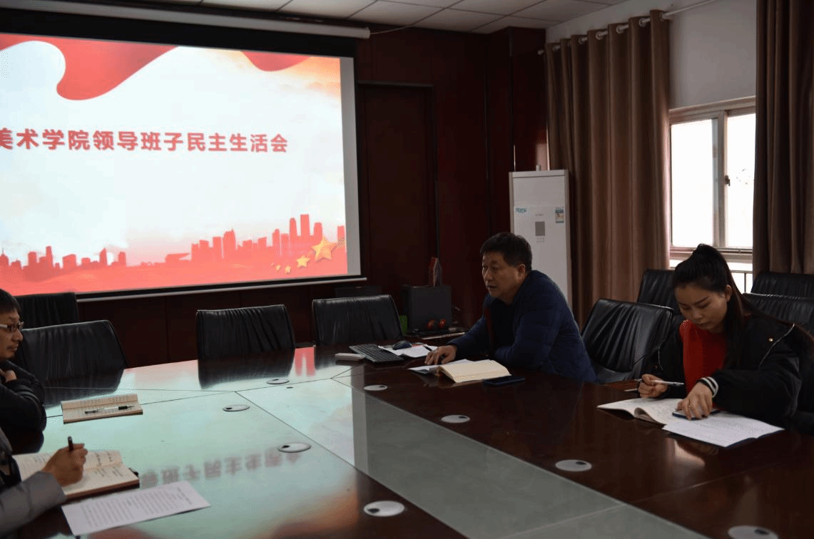 根据"不忘初心、牢记使命"主题教育工作安排,2019年12月6号,我院领导班子在艺术楼422会议室召开民主生活会。会议由党总支书记马忠主持,副院长张少华、党总支副书记吴艳艳参加。