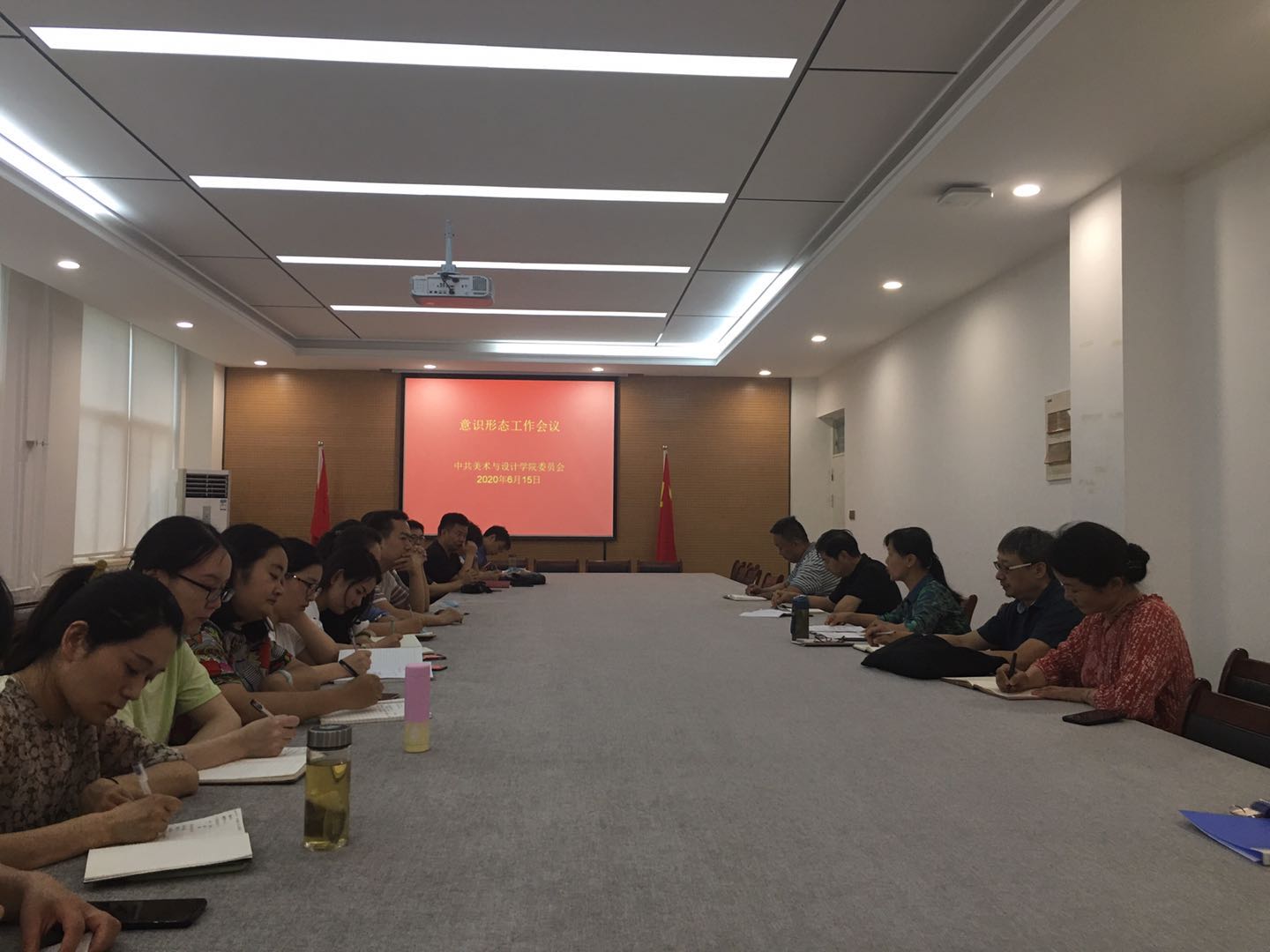 2020年6月15日下午,在艺术楼三楼会议室,我院党委召开了中心组扩大学习会议、意识形态工作专题会议。院领导班子成员、科级以上干部、教工和学生党支部书记参加了会议,会议由党委书记张利主持。