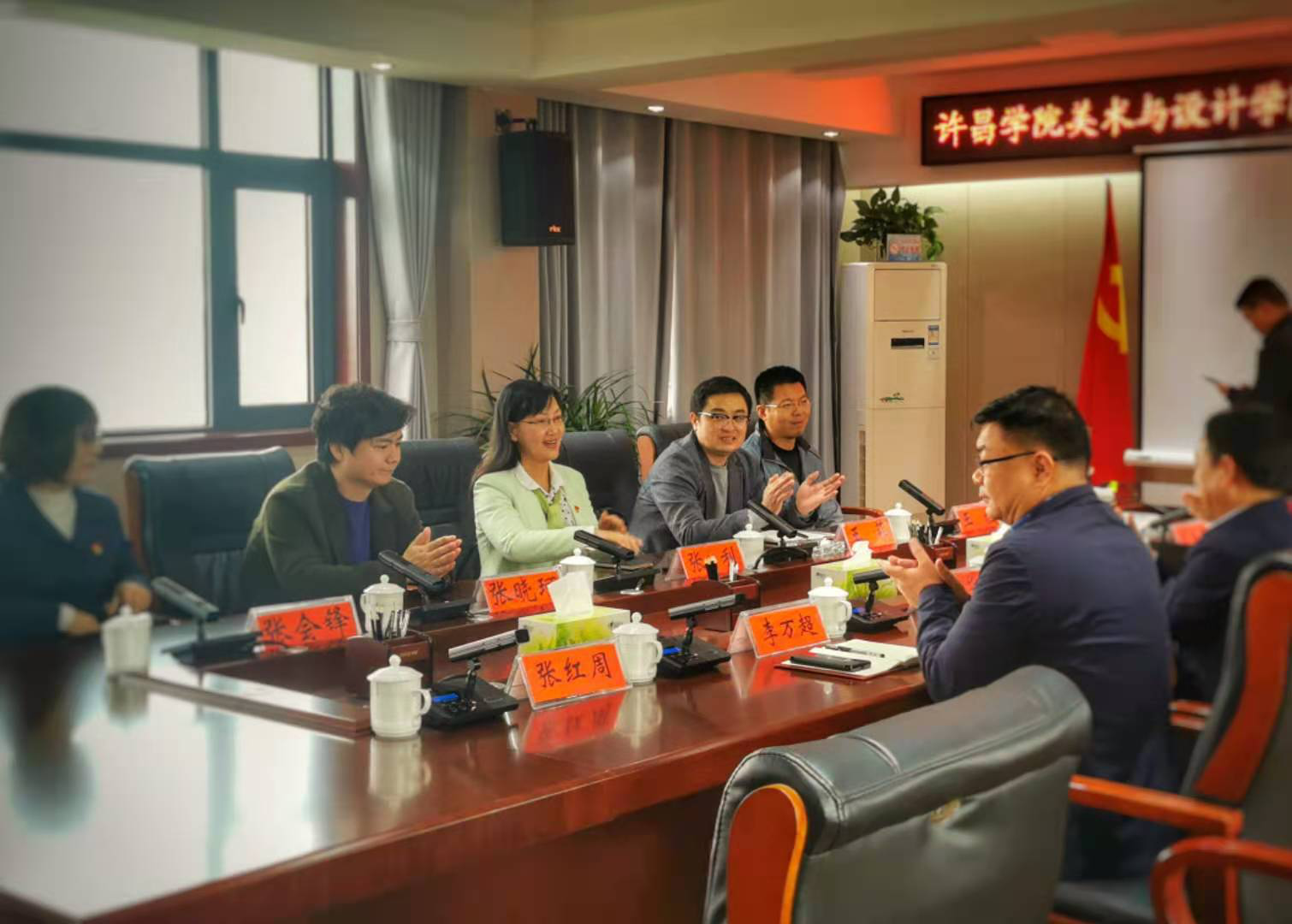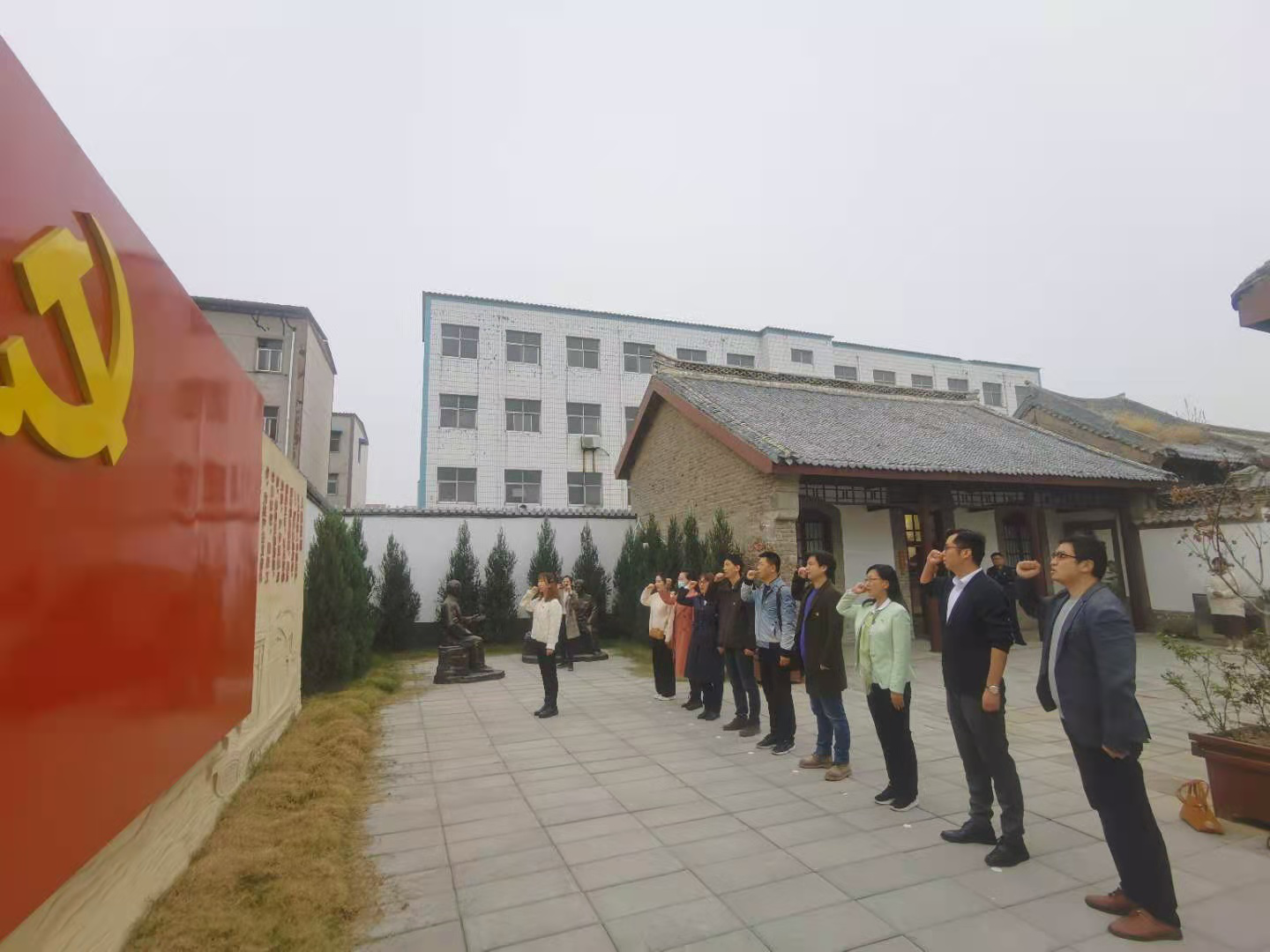 为学习贯彻落实习近平新时代中国特色社会主义思想和党的十九届五中全会精神,创新基层党组织生活方式,拓宽党建阵地,10月30日下午,许昌学院美术与设计学院教工党支部书记张晓珂带领支部全体党员受邀到长葛市老城镇开展主题党日活动,通过参观许昌地区第一个党支部诞生地、观看历史档案影片、参观珍贵档案文献、重温入党誓词等活动,开展党史教育,为党员干部上了一堂深刻、鲜活、生动的“特殊党课”。