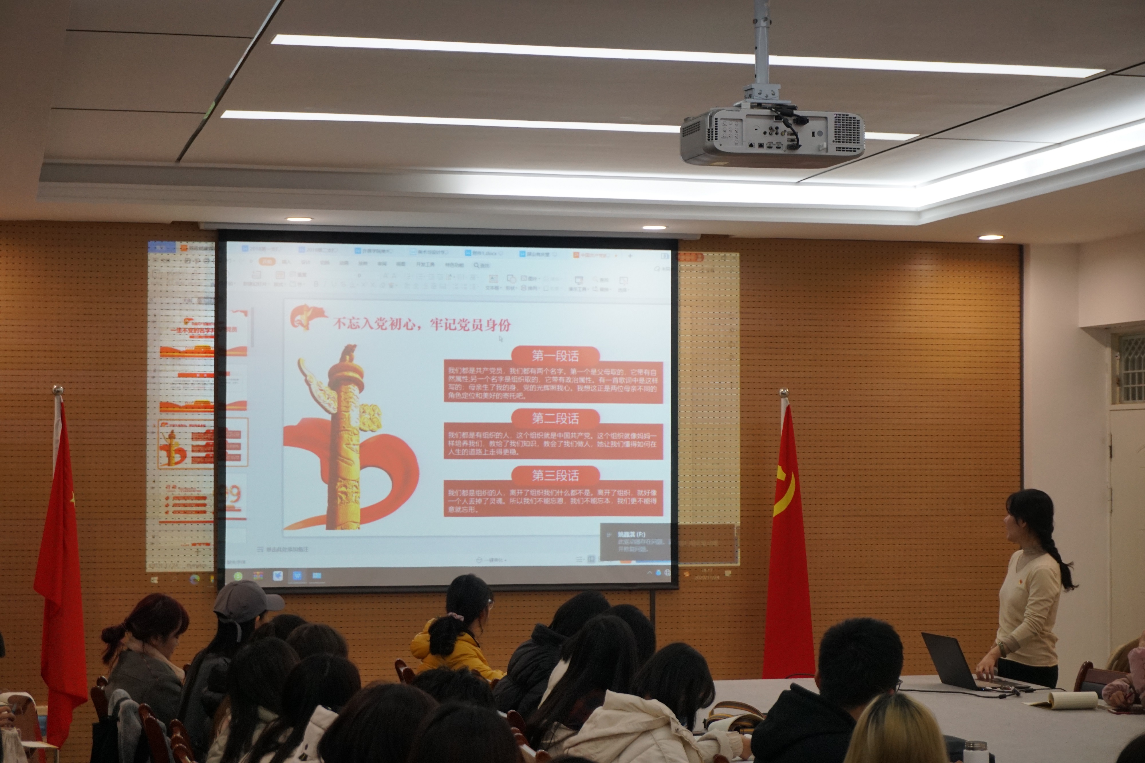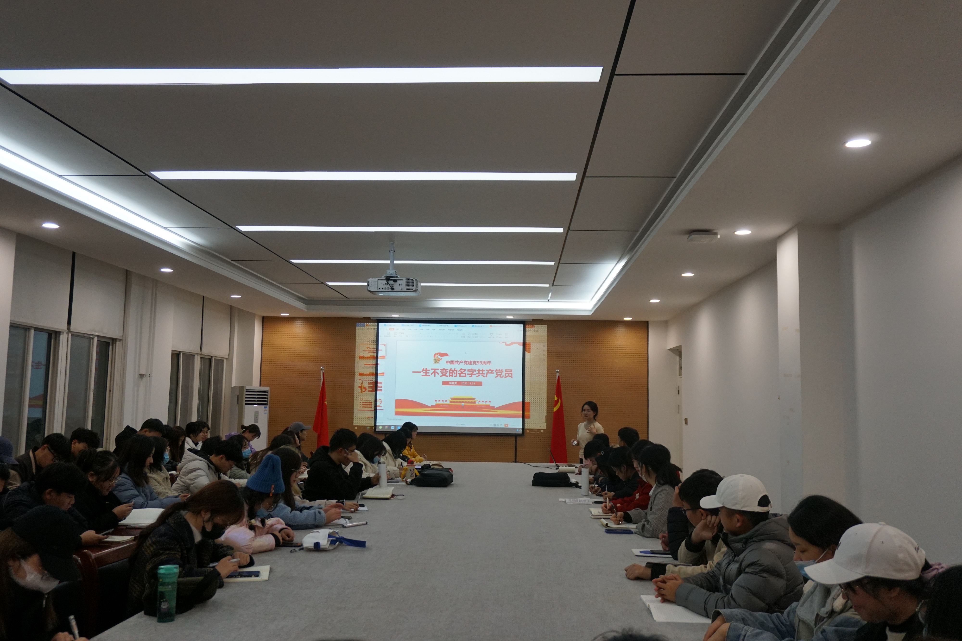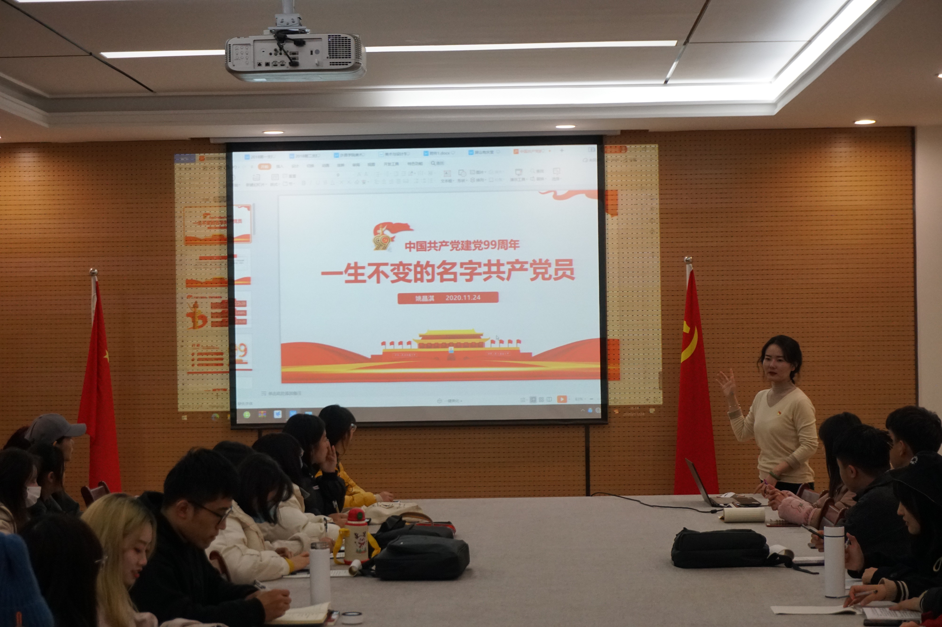 为庆祝中国共产党成立99周年,继承和发扬党的光荣传统,巩固拓展“不忘初心、牢记使命”的主题教育成果,我院于2020年11月24日在艺术楼三楼会议室召开了“一生不变的名字·共产党员”主题分党课培训会。会议由学生第一党支部支部书记姚晶淇主持,全体入党积极分子参加。