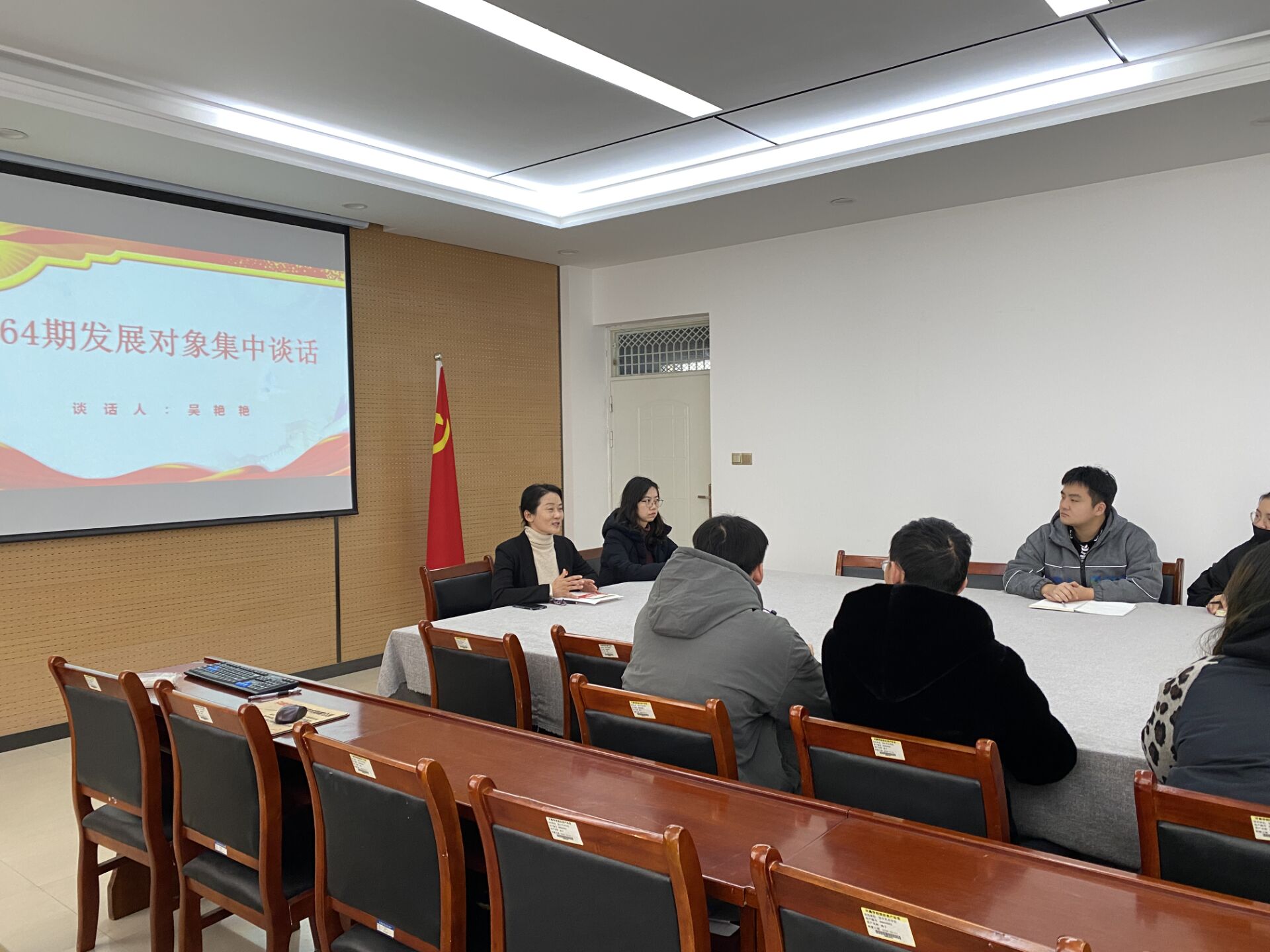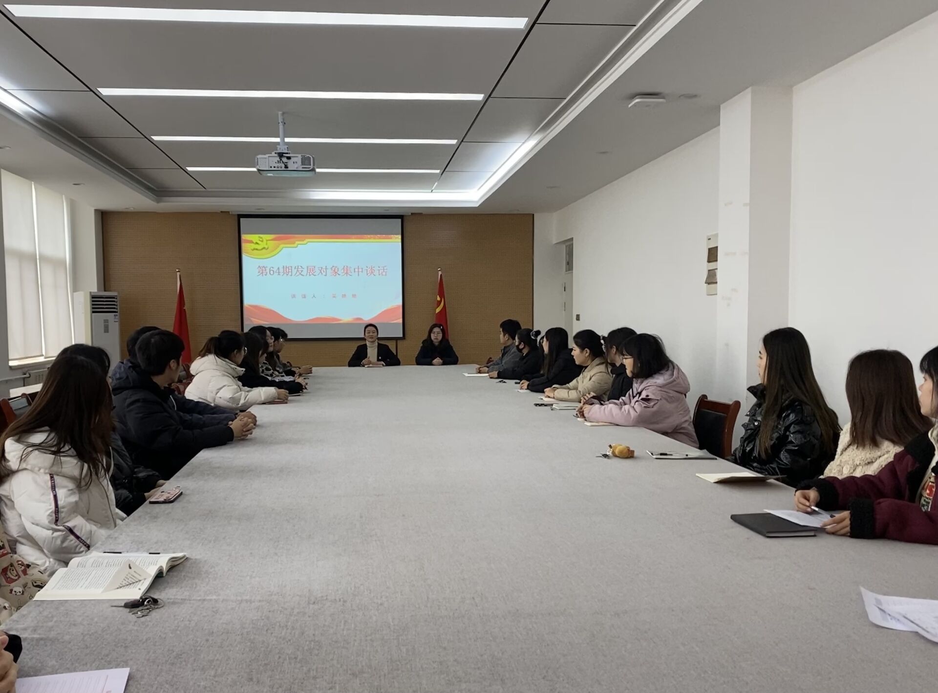 12月17日上午10点,我院于艺术楼三楼会议室组织新发展预备党员集体谈话。本次谈话由党委副书记吴艳艳主持,27名拟发展预备党员到场参加。